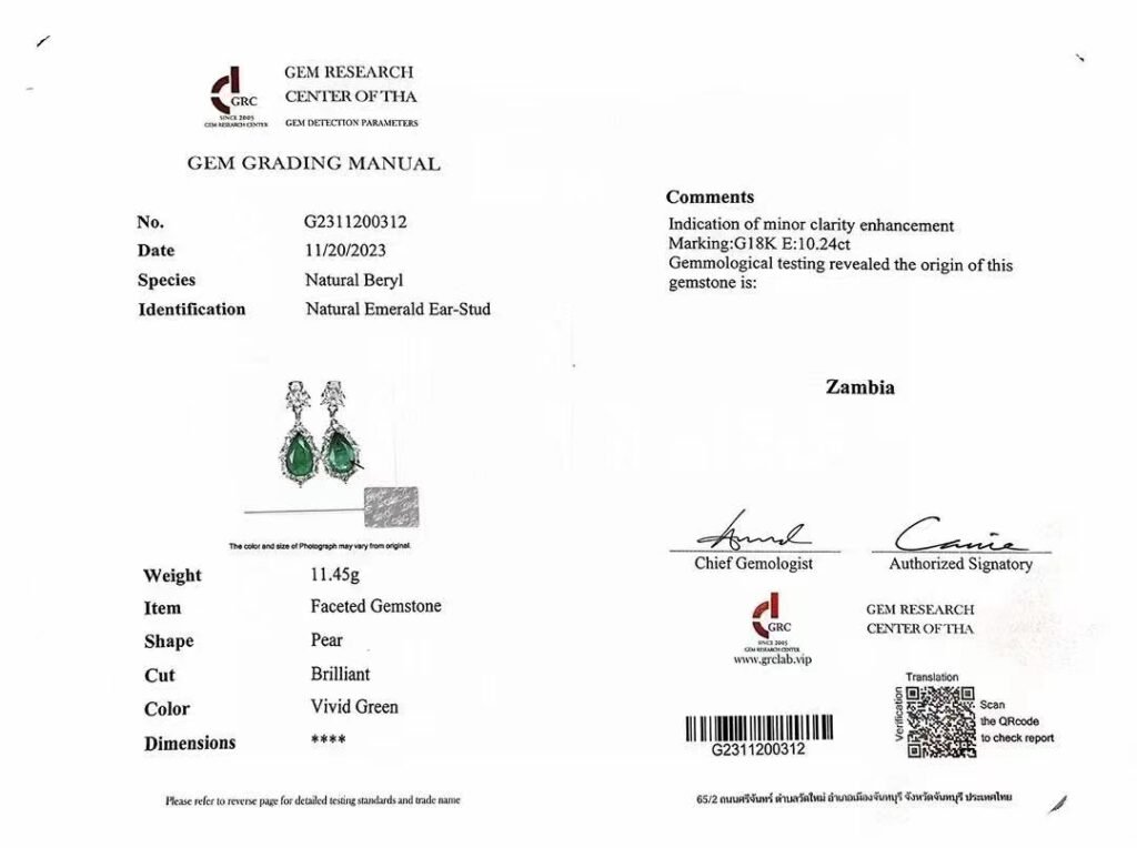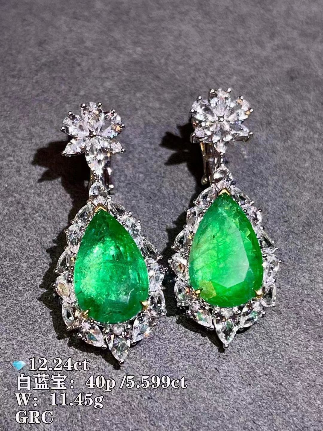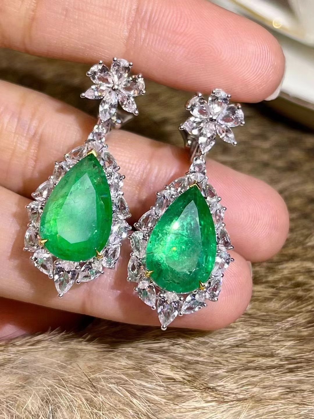 SGARIT Fine Jewelry Factory 18k White Gold 10.24 Carats Pear Cut VVS Jewellery GRA Engagement Wedding Gift Luxury style emerald Natural Gemstone earrings.