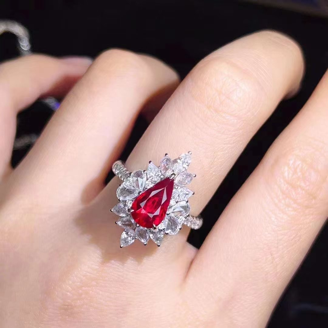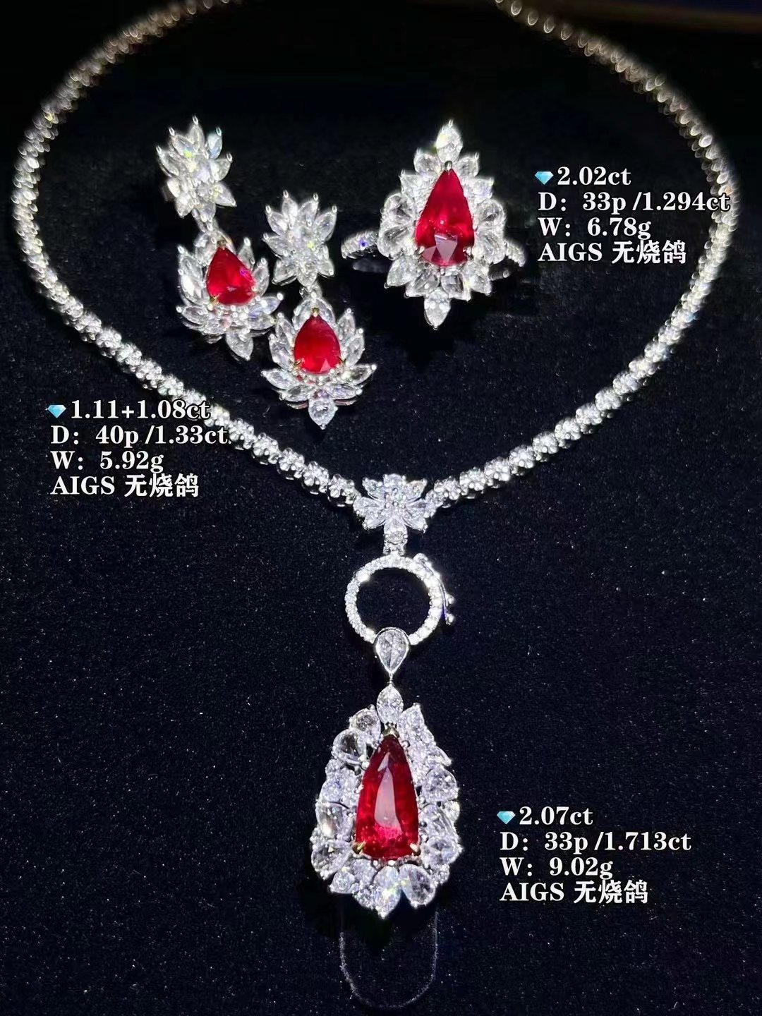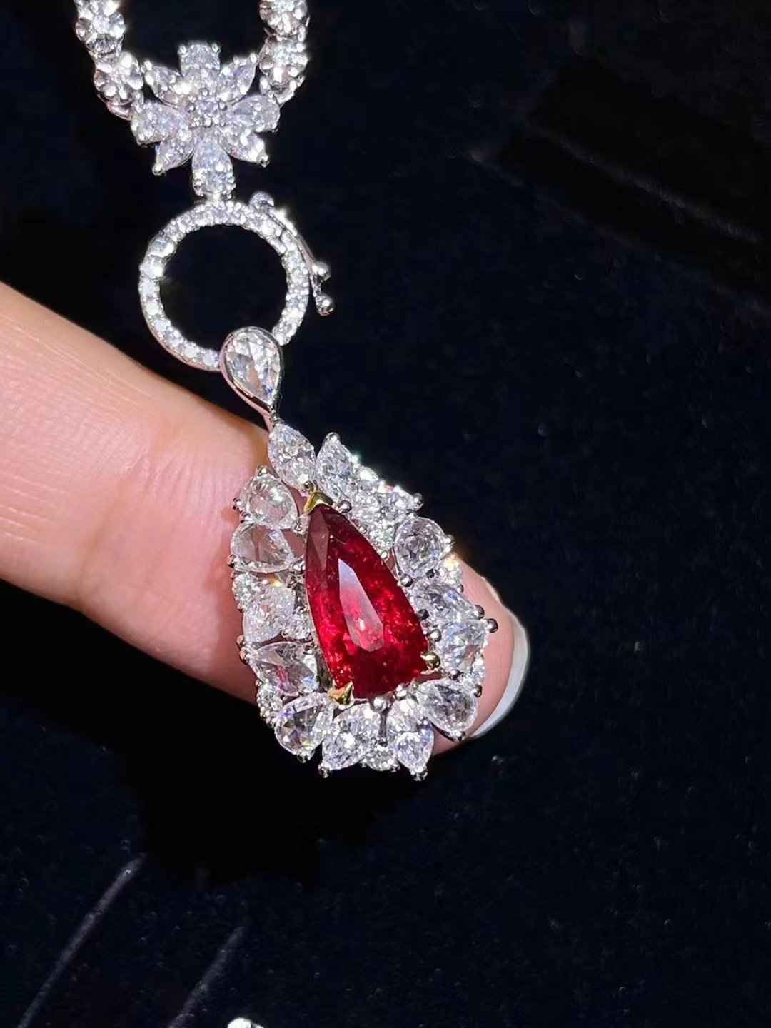 SGARIT Fine Jewelry Factory 18k White Gold 2.07 Carats Pear Cut VVS Jewellery GRA Engagement Wedding Gift elegant red ruby Natural Gemstone pendant.