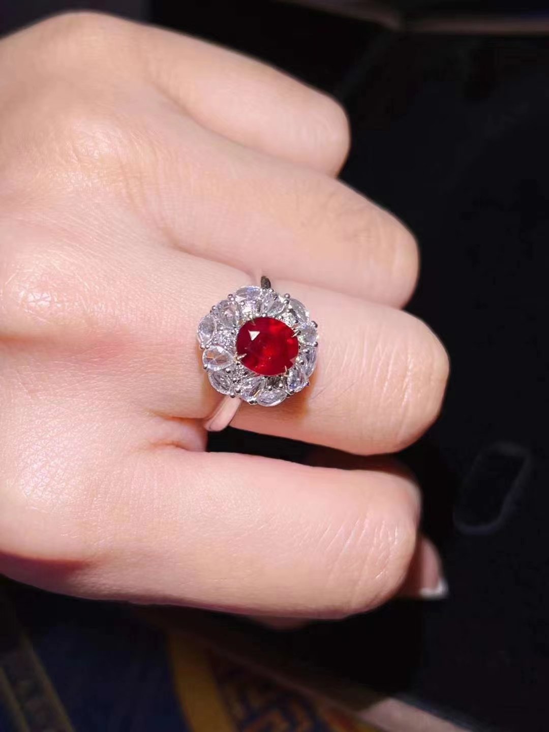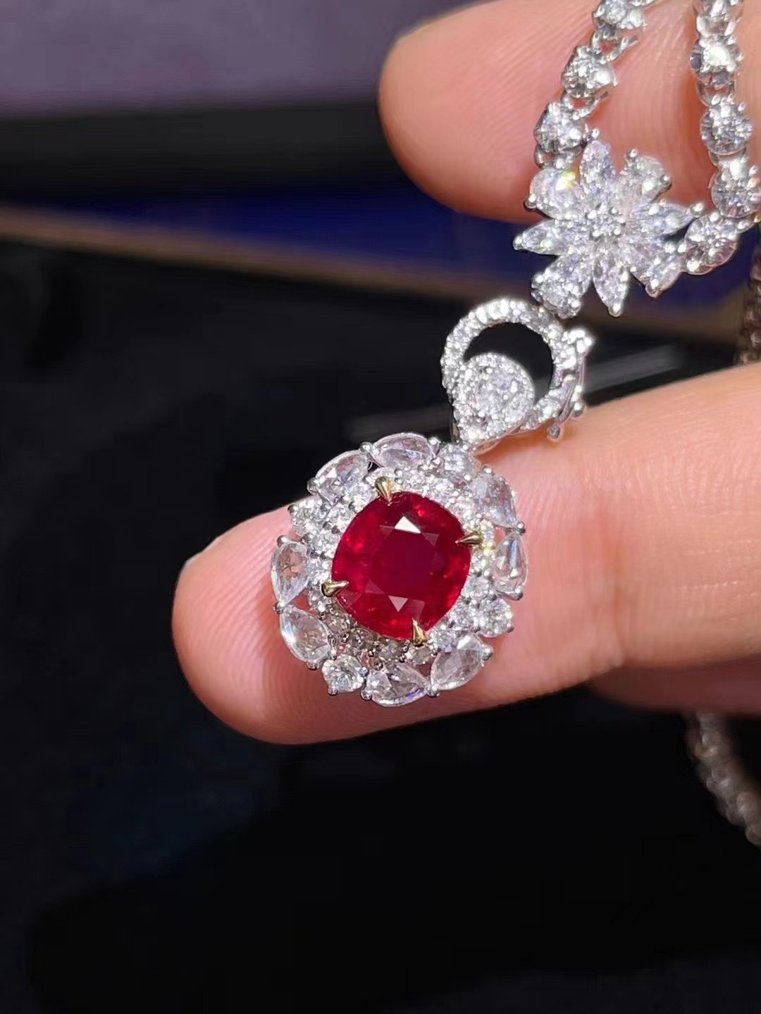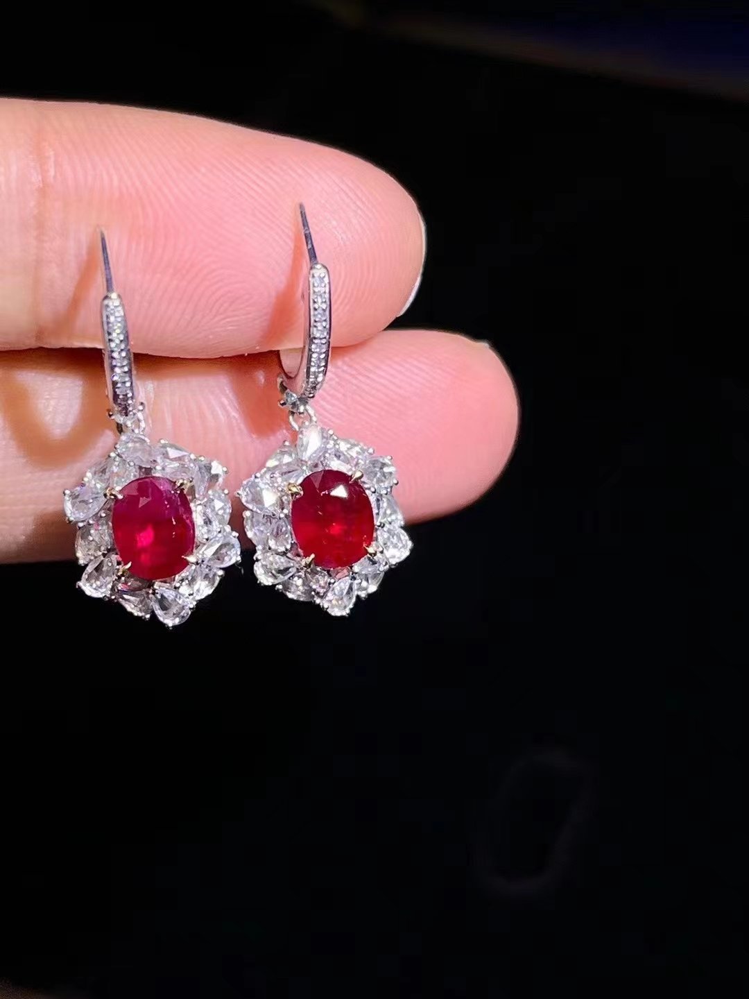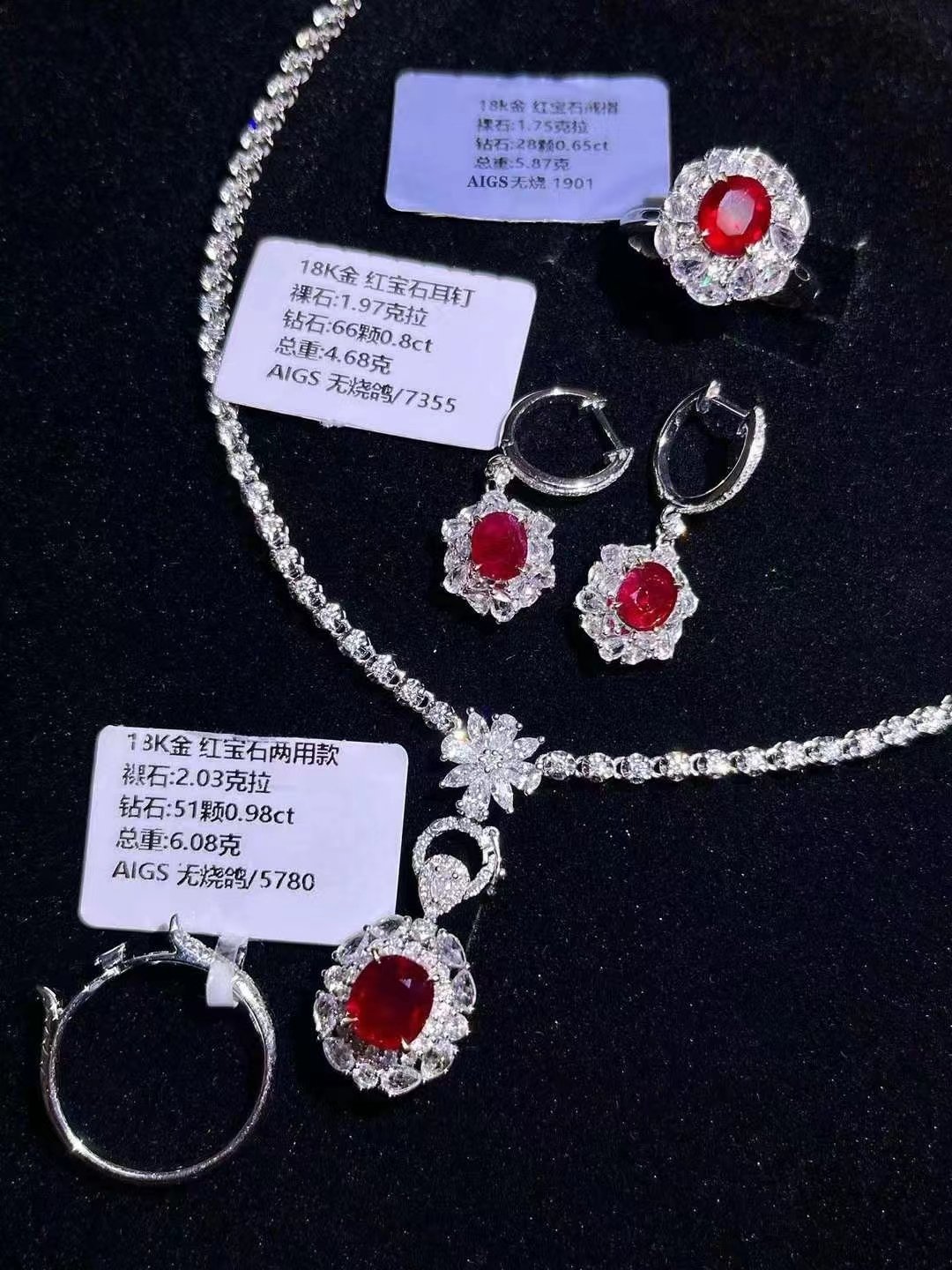 SGARIT Fine Jewelry Factory 18k White Gold 2.03 Carats Oval Cut VVS Jewellery With International Authority Certificate Classic Red ruby Natural Gemstone Three piece set.