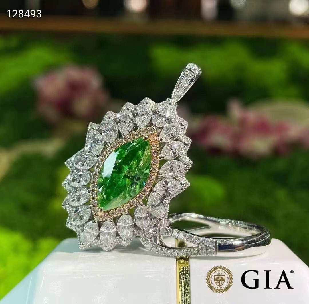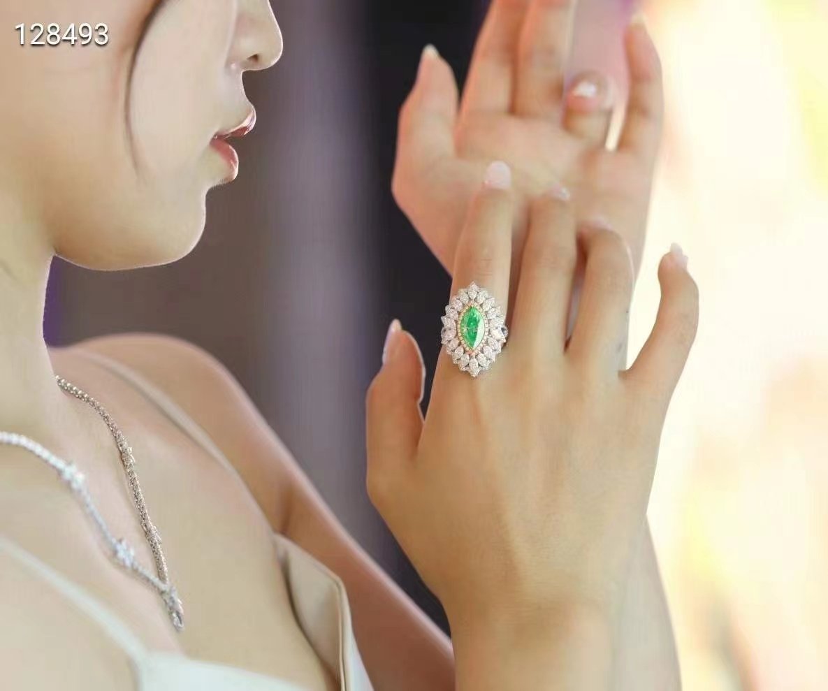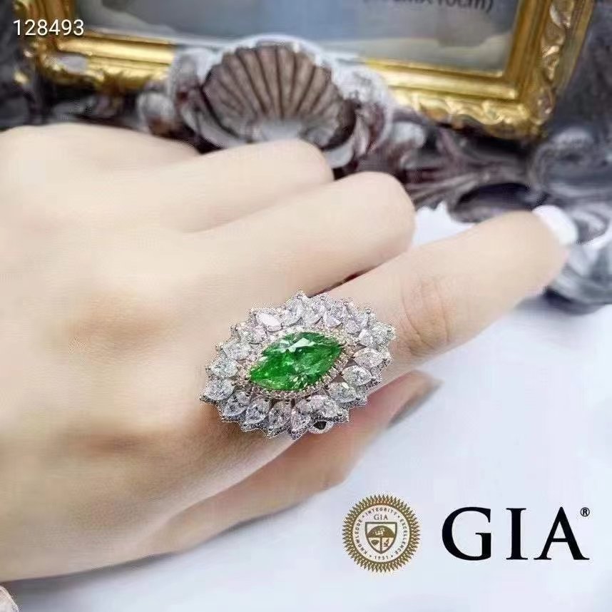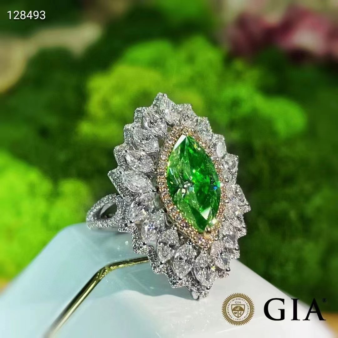 SGARIT Fine Jewelry Factory 18k White Gold 3.01 Carats Marquise Cut VVS Jewellery GRA Engagement Wedding Gift girlish Light Green Natural Diamond Ring.