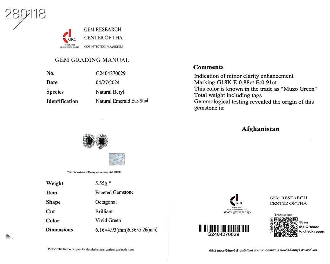 Authenticity guaranteed: Each earring is accompanied by a GRC Authority Certificate, attesting to the authenticity of the emeralds and the exceptional quality of the craftsmanship.