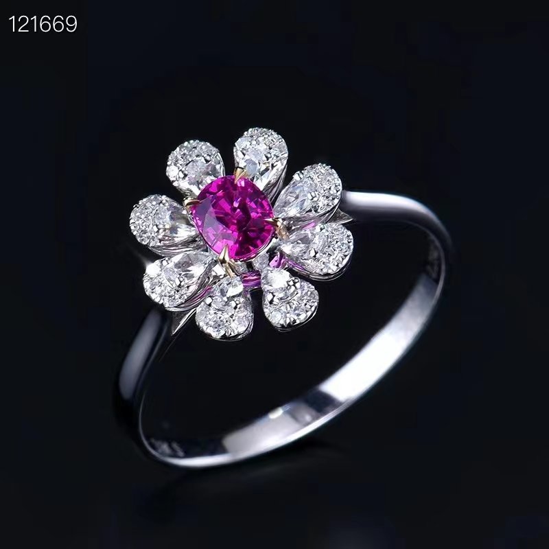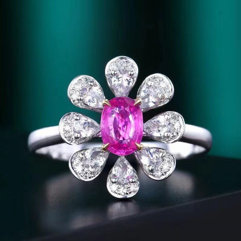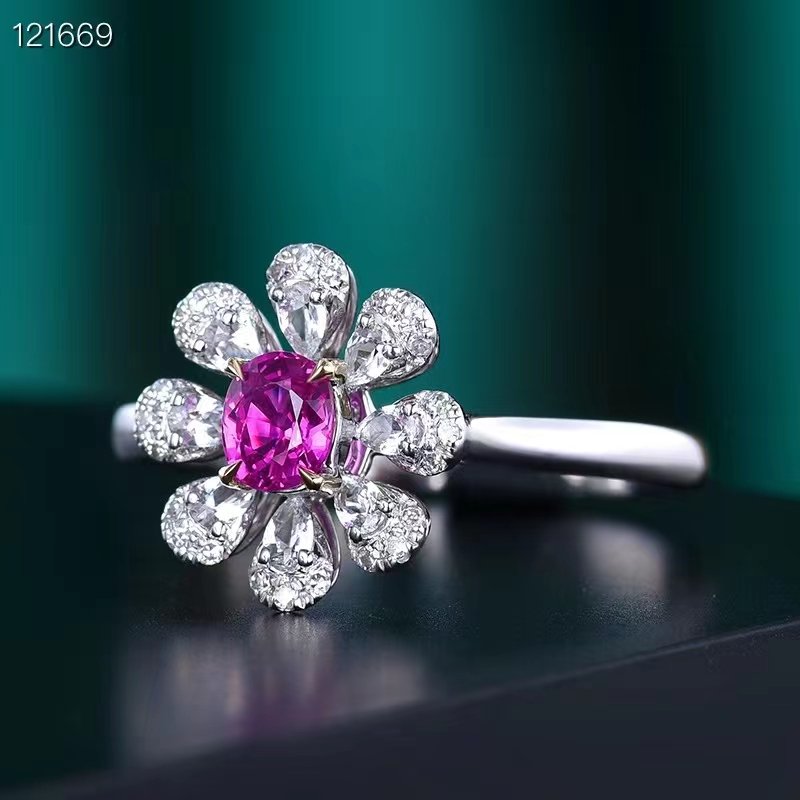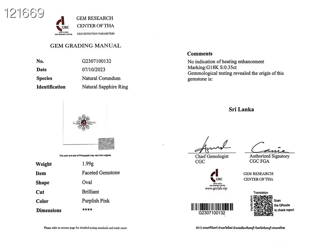 SGARIT Fine Jewelry Factory Solid 18k White Gold 0.35 Carats Oval Cut VVS Jewellery With GRC Authority Certificate Romantic Unheated Pink Purple Sapphire Natural Gemstone Ring.
