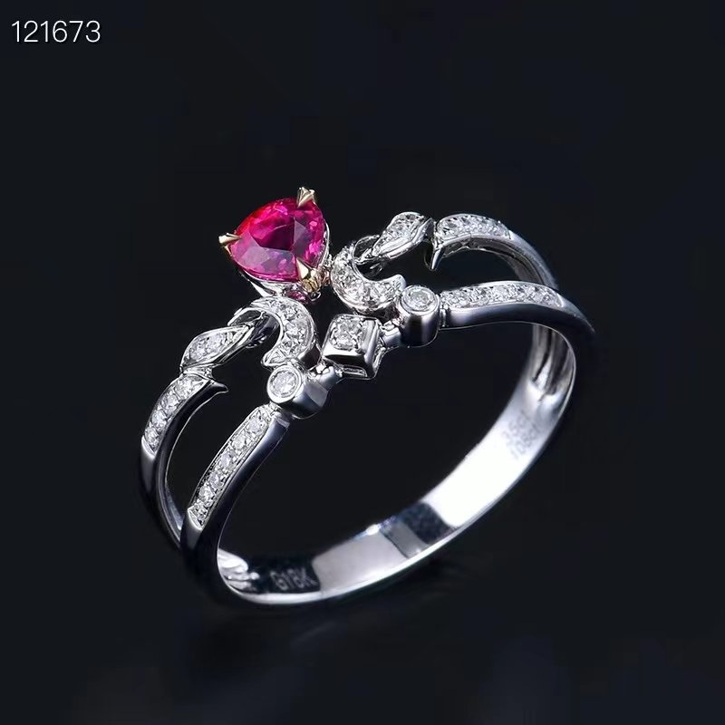 SGARIT Fine Jewelry Factory Solid 18k White Gold 0.35 Carats Trillion Cut VVS Jewellery With AIGS Authority Certificate Romantic Unfired Ruby Natural Gemstone Ring.