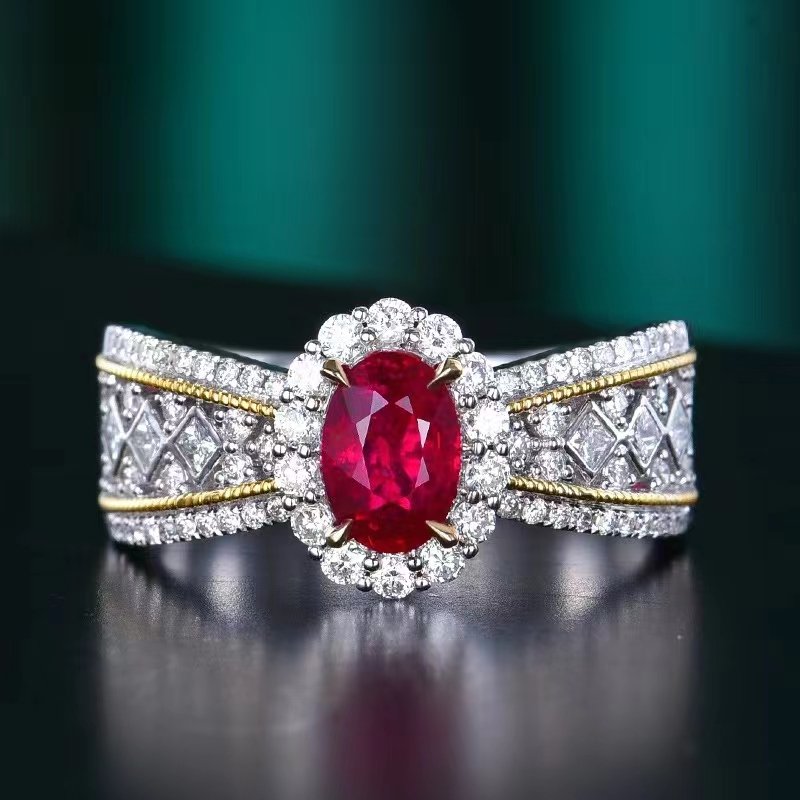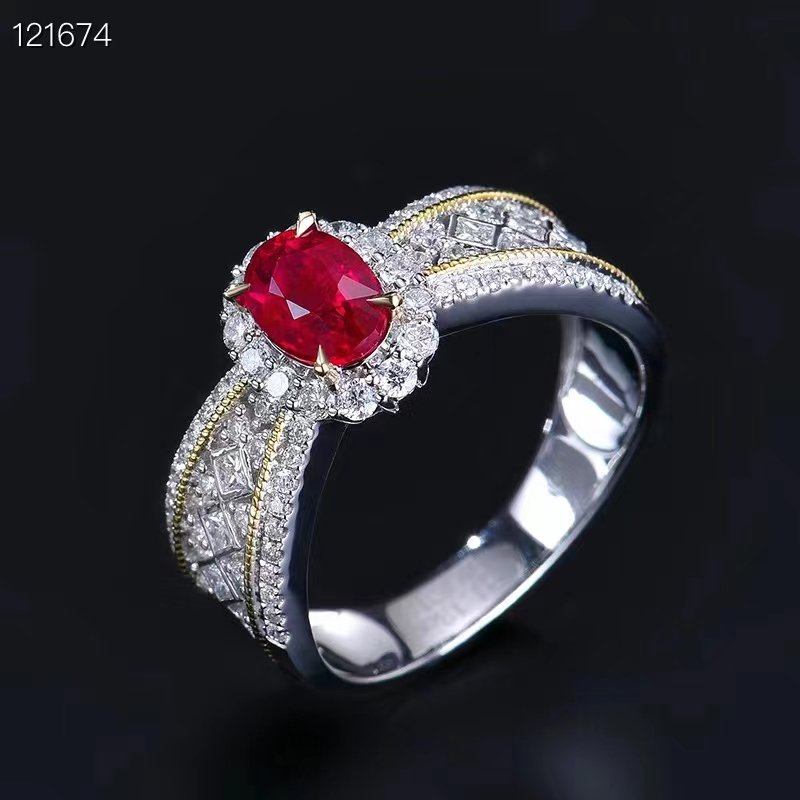 SGARIT Fine Jewelry Factory Solid 18k White Gold 1.13 Carats Oval Cut VVS Jewellery With AIGS Authority Certificate Romantic Pigeon Blood Natural Gemstone Ruby Ring.