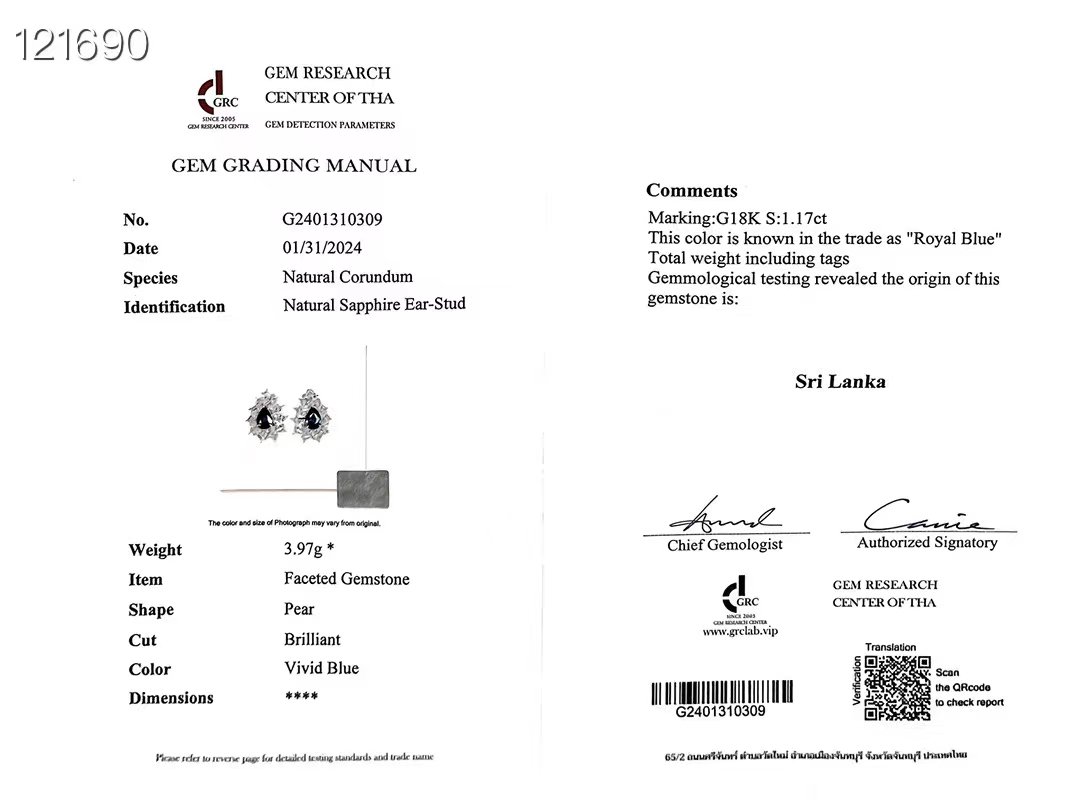 SGARIT Fine Jewelry Factory Solid 18k White Gold 1.17 Carats Pear Cut VVS Jewellery With GRC Authority Certificate Romantic White Sapphire Natural Gemstone Earrings .