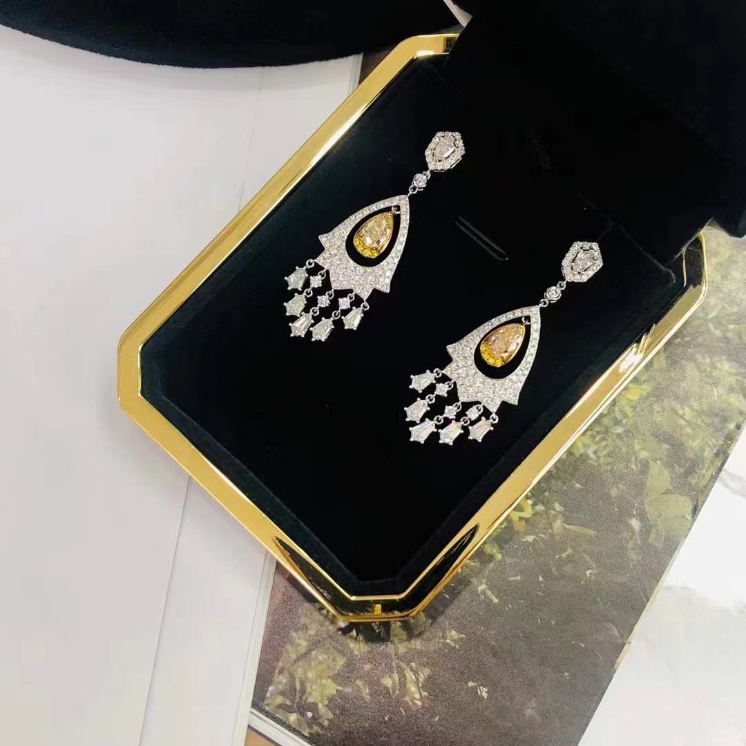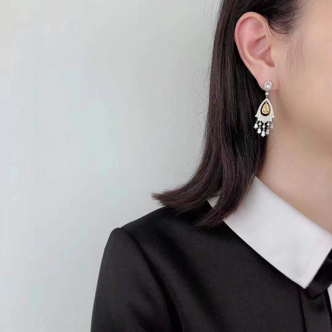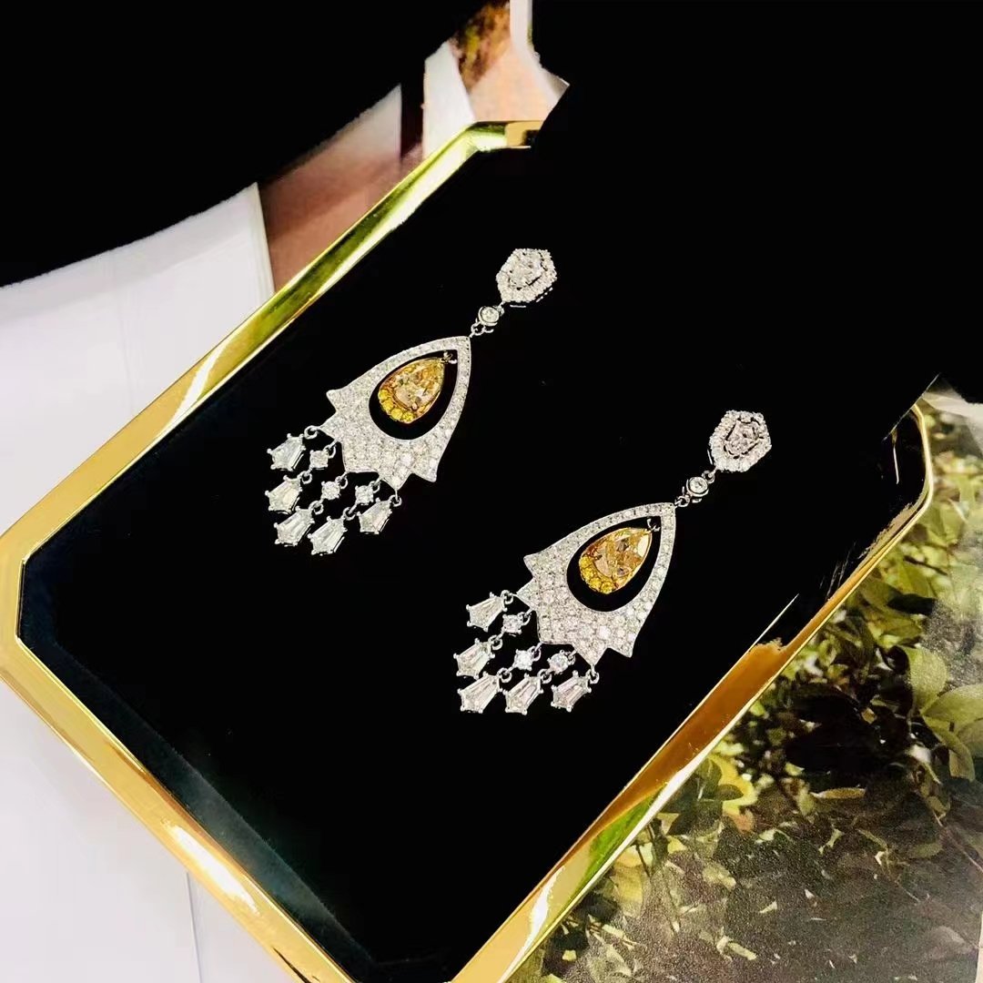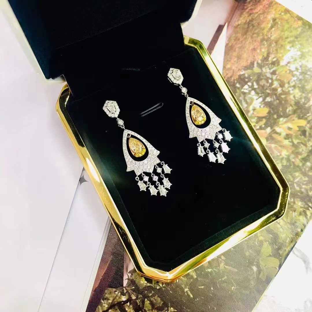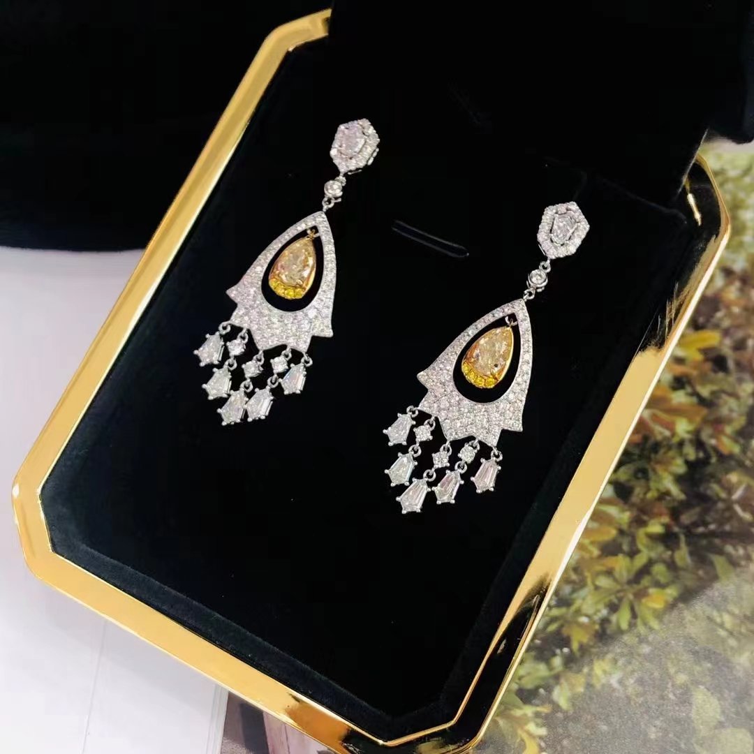 SGARIT Fine Jewelry Factory Solid 18k White Gold 1.400 Carats Pear Cut VVS Jewellery With International Certificate Classic Yellow Lab Natural Gemstone Earrings.