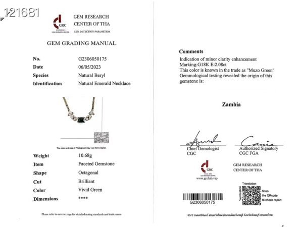 SGARIT Fine Jewelry Factory Solid 18k White Gold 2.08 Carats Emerald Cut VVS Jewellery With GRC Authority Certificate Elegant Emerald Natural Gemstone Necklace.