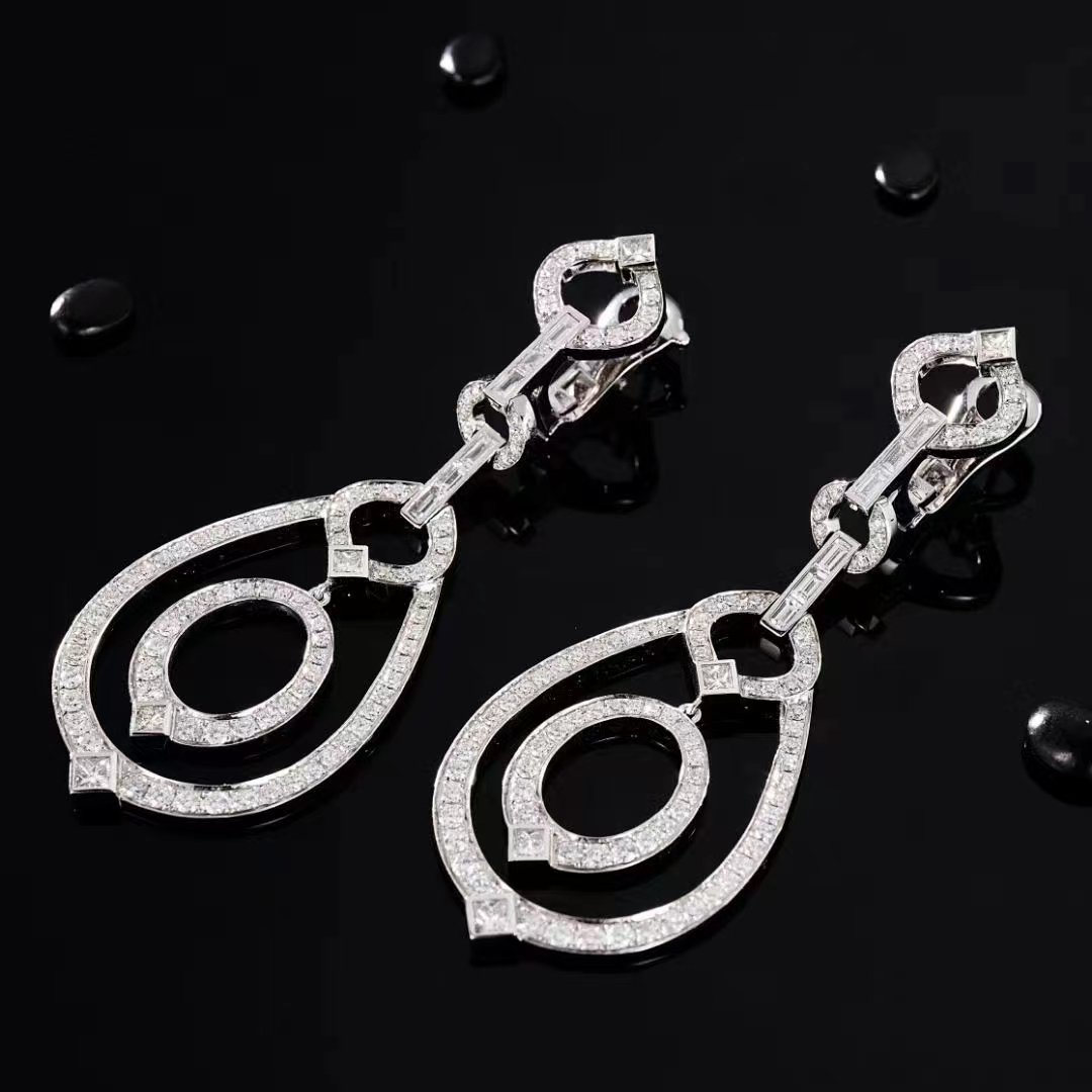 SGARIT Fine Jewelry Factory Solid 18k White Gold 2.156 Carats Radiant Cut VVS Jewellery With International Certificate Classic Five Ring Natural Diamond Earrings.