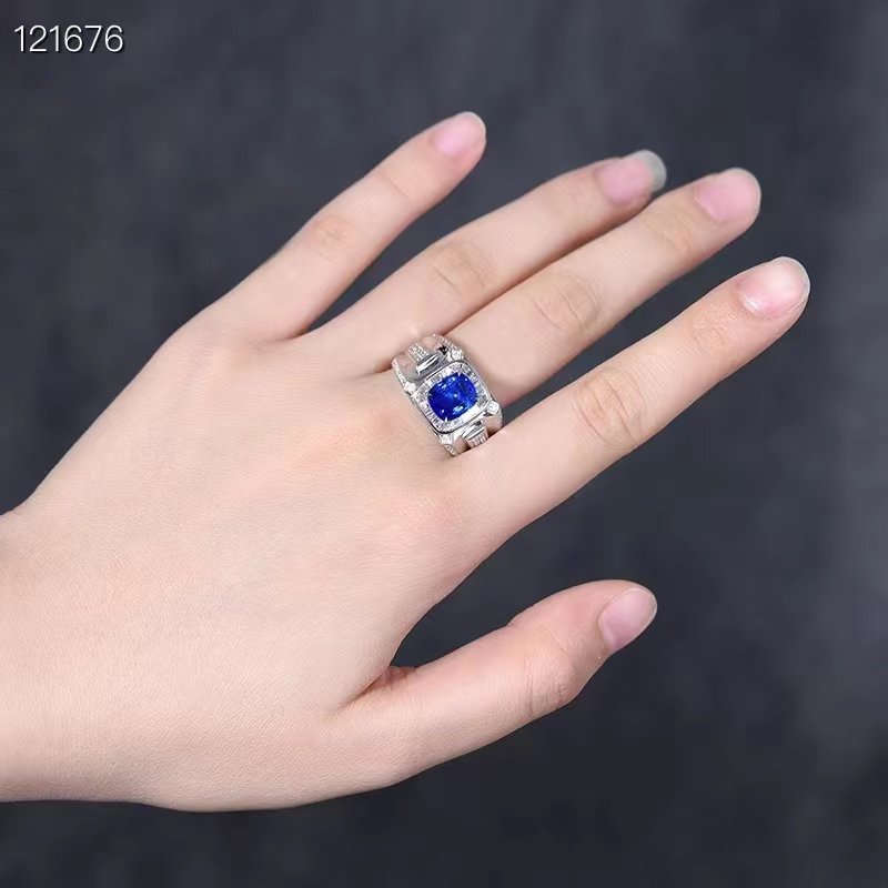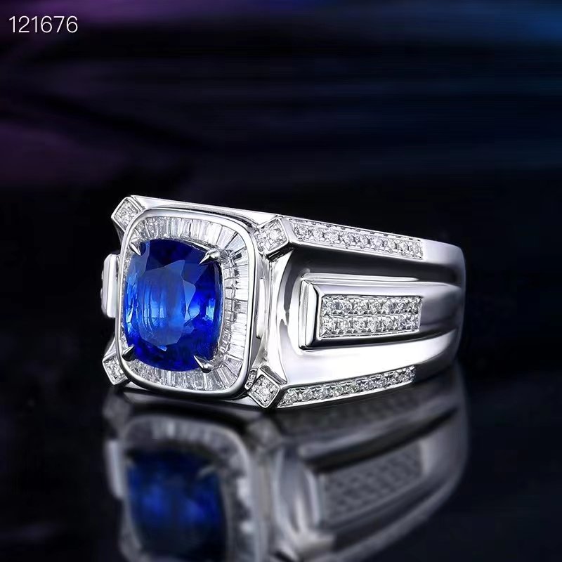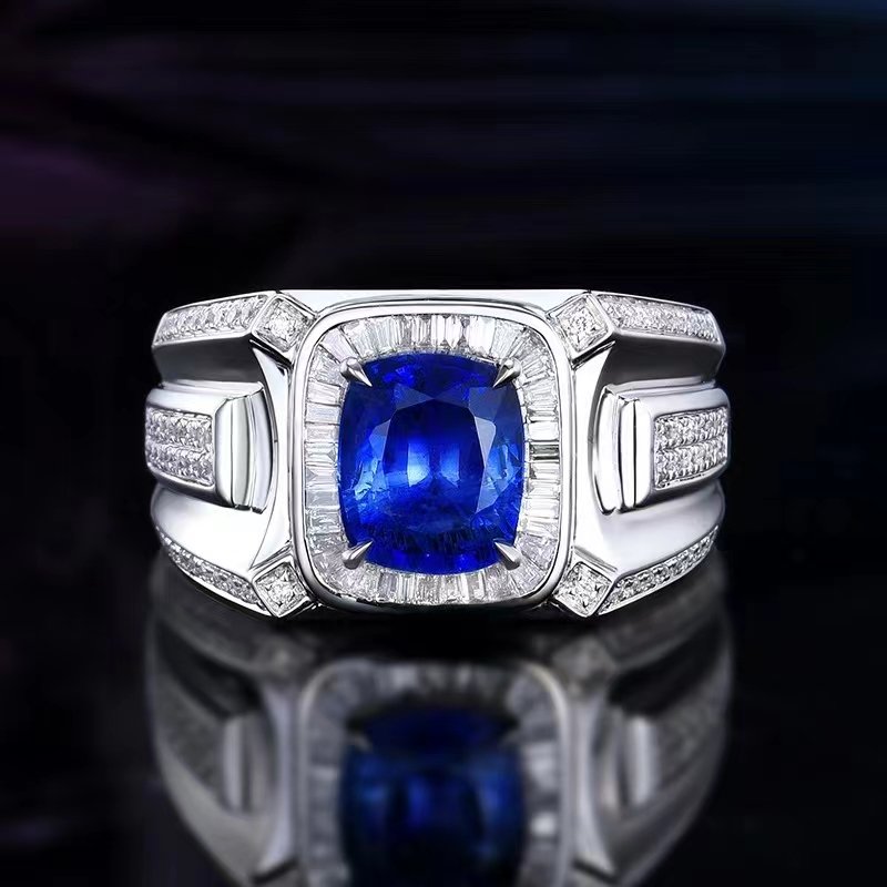 SGARIT Fine Jewelry Factory Solid 18k White Gold 2.91 Carats Cushion Cut VVS Jewellery With GRC Authority Certificate Romantic Royal Sapphire Natural Gemstone Ring.