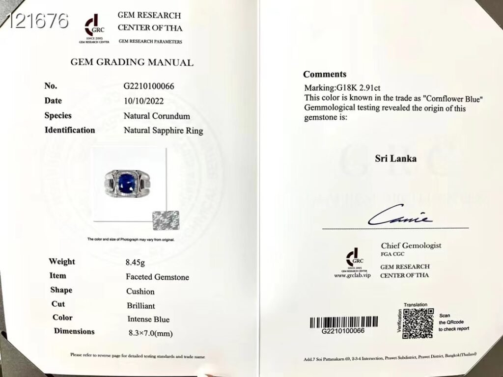 SGARIT Fine Jewelry Factory Solid 18k White Gold 2.91 Carats Cushion Cut VVS Jewellery With GRC Authority Certificate Romantic Royal Sapphire Natural Gemstone Ring.