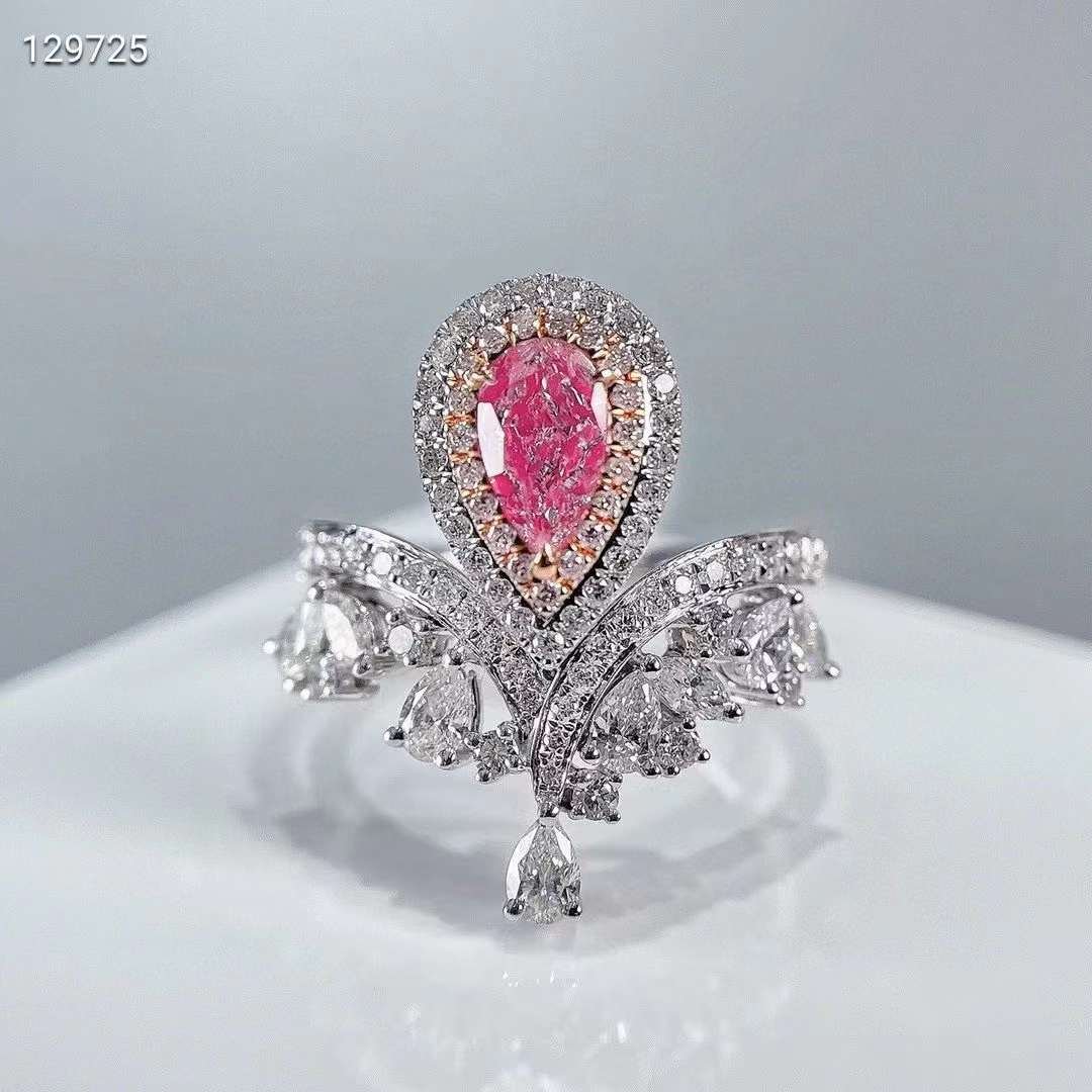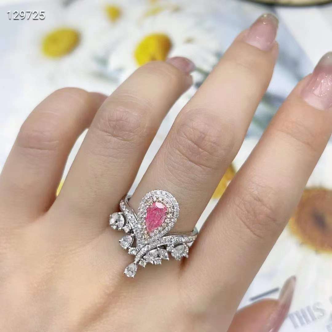 SGARIT Fine Jewelry Manufacturer 18k White Gold 0.5 Carats Pear Cut VS2 Jewellery With Guild Certificate Classic Crown Pink Natural Diamond Ring.