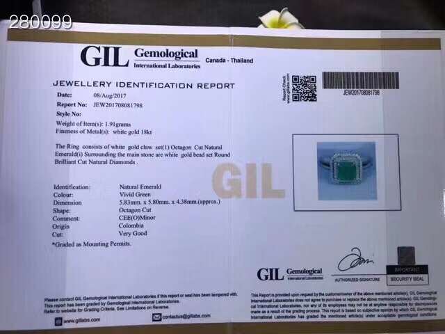 SGARIT Fine Jewelry Manufacturer 18k White Gold 0.95 Carats Emerald Cut VVS Jewellery With GIL Authority Certificate elegant Emerald Natural Gemstone Ring.
