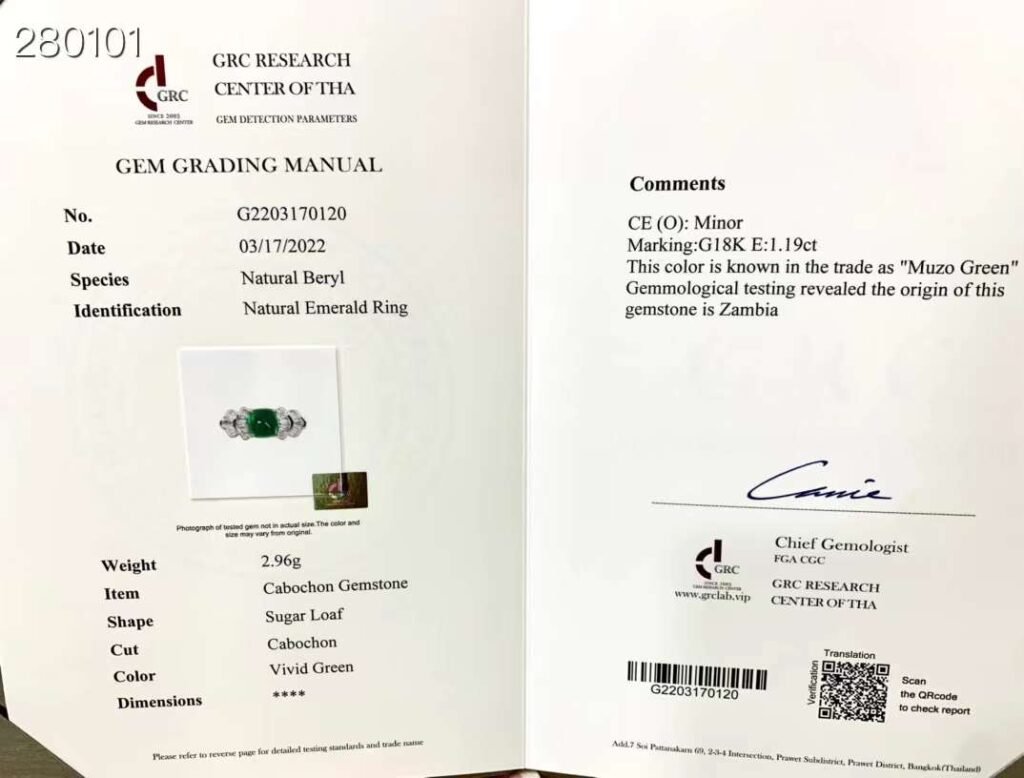 SGARIT Fine Jewelry Manufacturer 18k White Gold 1.19 Carats Emerald Cut VVS Jewellery With GRC Authority Certificate Classic Emerald Natural Gemstone Ring.