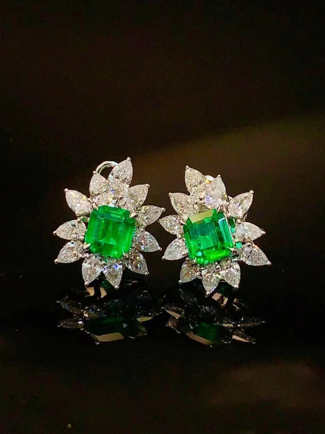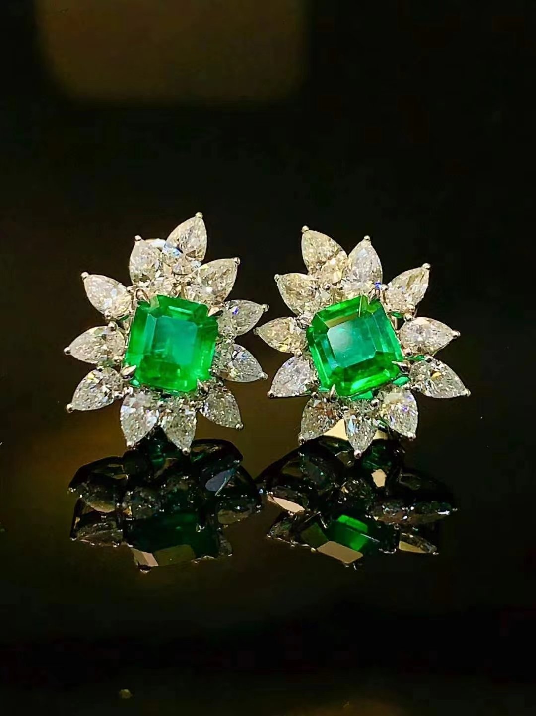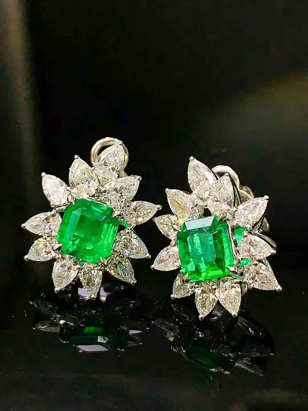 SGARIT Fine Jewelry Manufacturer 18k White Gold 1.62 Carats Emerald Cut VVS Jewellery With GRA Engagement Wedding Gift fashionable Emerald Natural Gemstone Earrings.