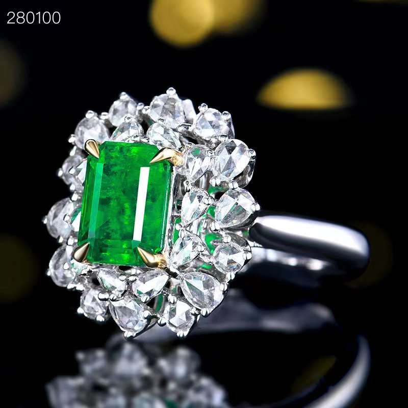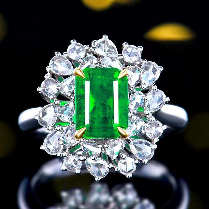 SGARIT Fine Jewelry Manufacturer 18k White Gold 1.76 Carats Emerald Cut VVS Jewellery With GUILD Authority Certificate Classic Emerald Natural Gemstone Ring.