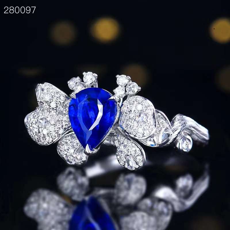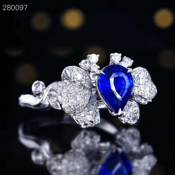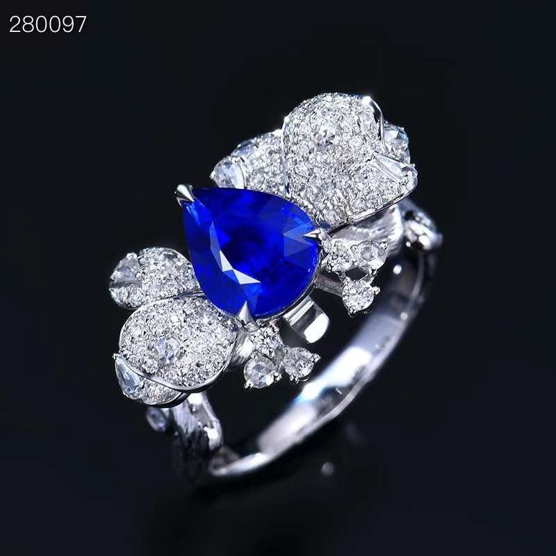 SGARIT Fine Jewelry Manufacturer 18k White Gold 1.97 Carats Pear Cut VVS Jewellery With GRC Authority Certificate Luxury style Blue Natural Gemstone Ring.