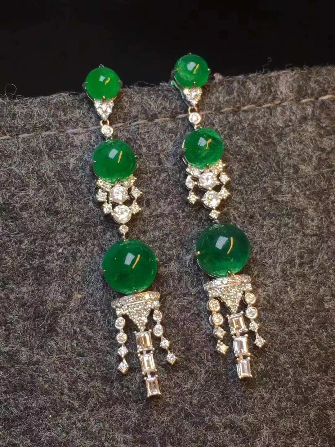 SGARIT Fine Jewelry Manufacturer 18k White Gold 10.455 Carats Prong Cut VVS Jewellery With Guild Certificate Menthol mambo Emerald Natural Gemstone Earrings.