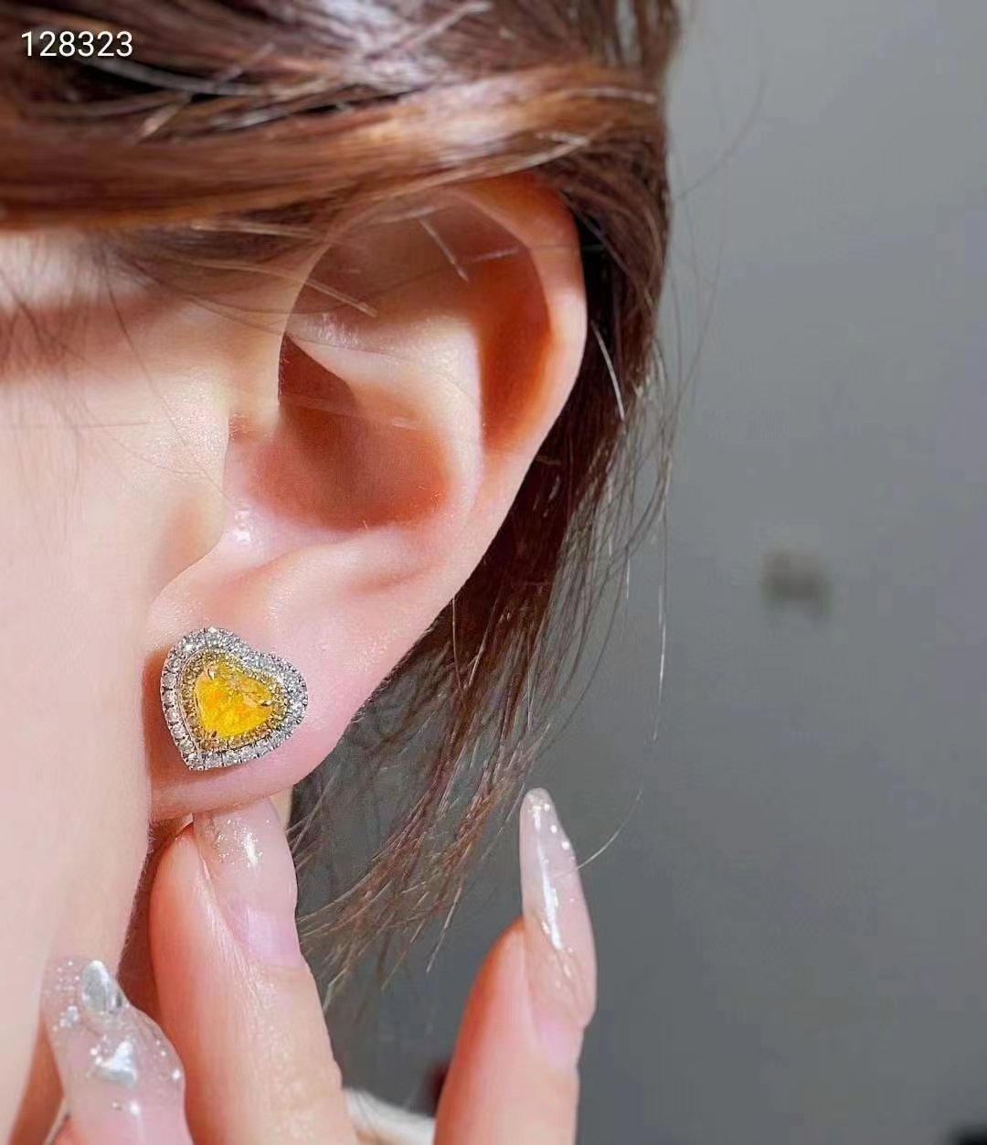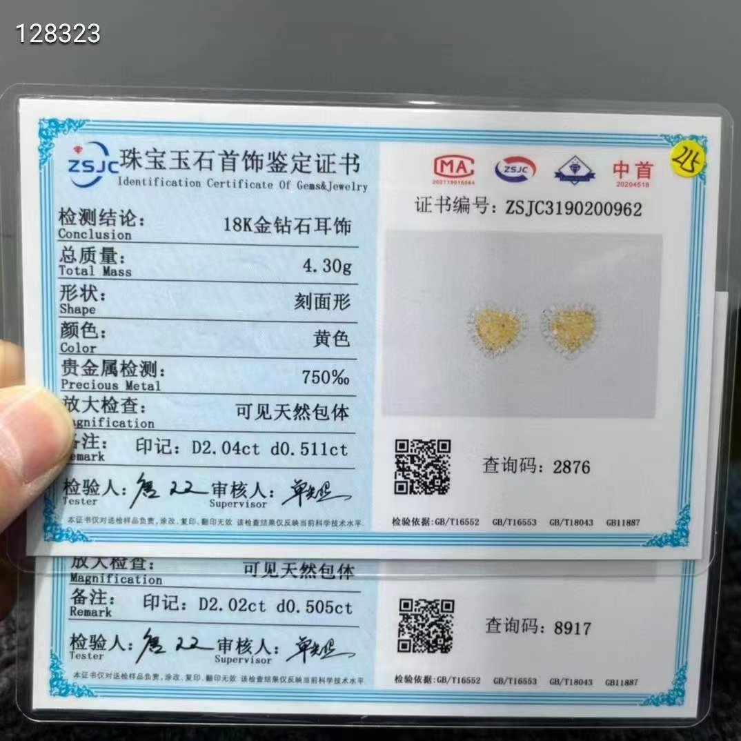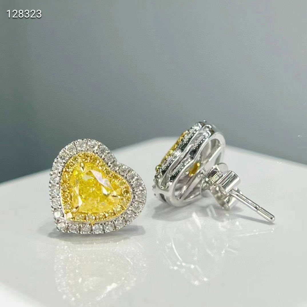 SGARIT Fine Jewelry manufacturer 18k White Gold 2.04 Carats Heart Cut Jewellery GRA Engagement Wedding Gift Classic heart Yellow Natural diamond earrings.