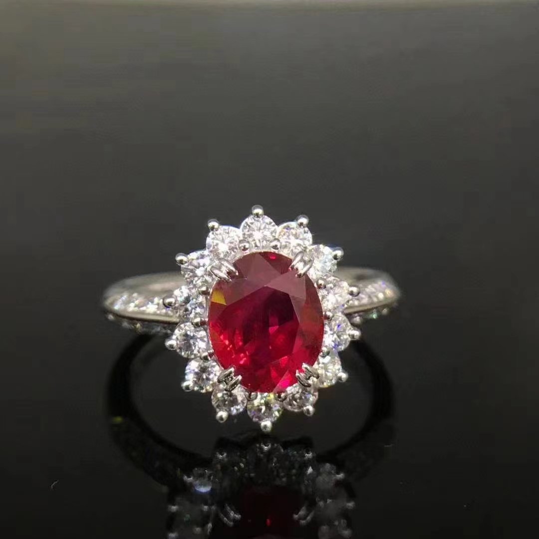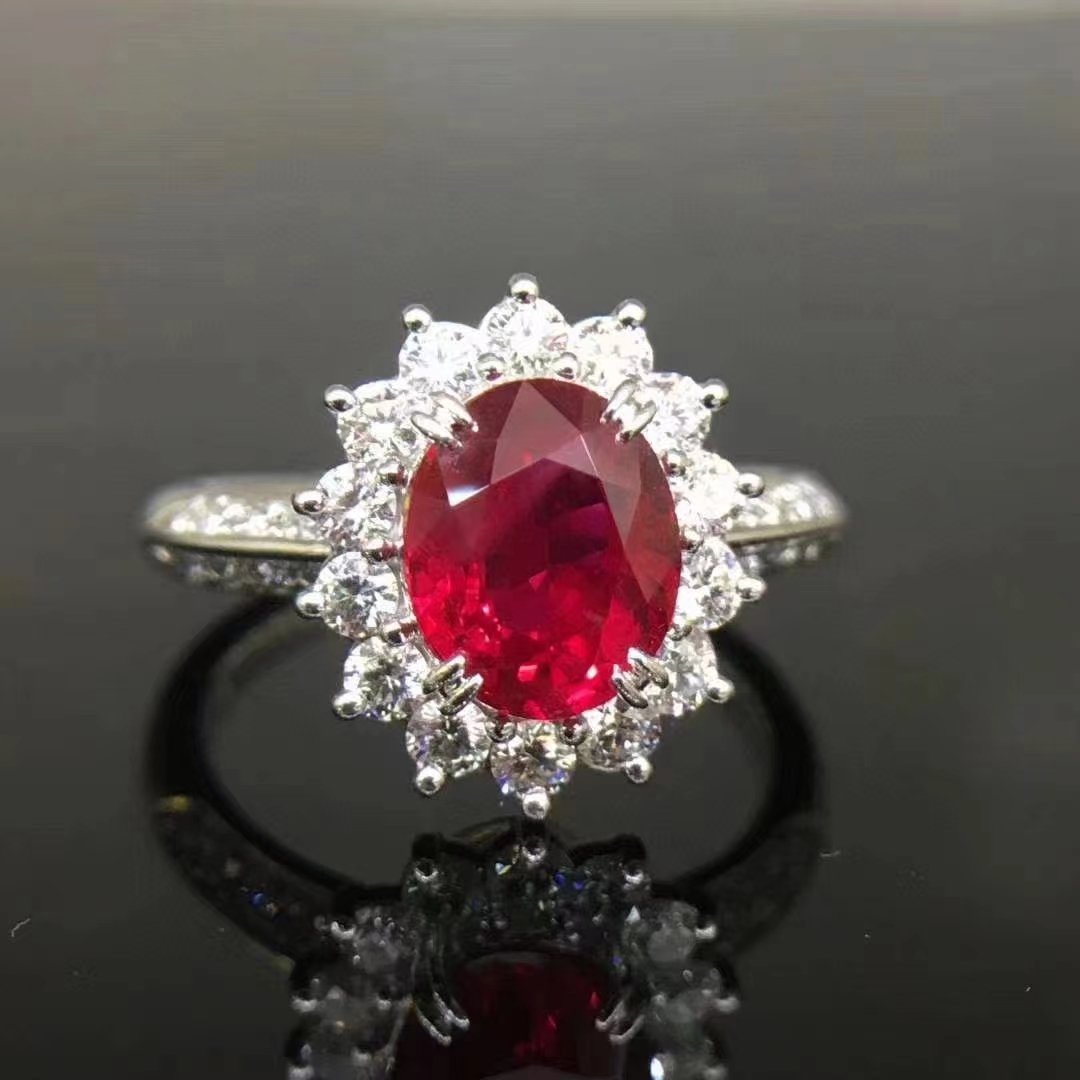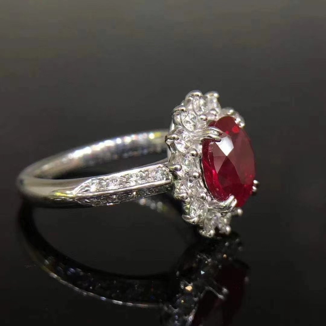 SGARIT Fine Jewelry Manufacturer 18k White Gold 2.16 Carats Oval Cut VVS Jewellery With Guild Certificate Romantic Pigeon blood Natural Gemstone Ring.