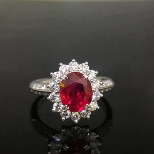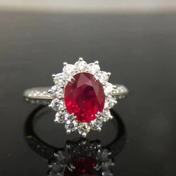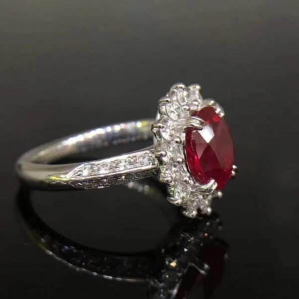 SGARIT Fine Jewelry Manufacturer 18k White Gold 2.16 Carats Oval Cut VVS Jewellery With Guild Certificate Romantic Pigeon blood Natural Gemstone Ring.