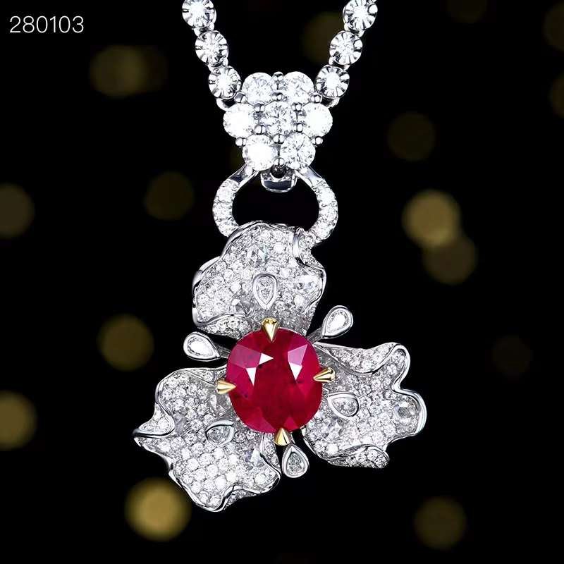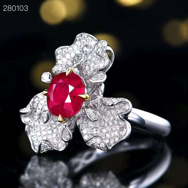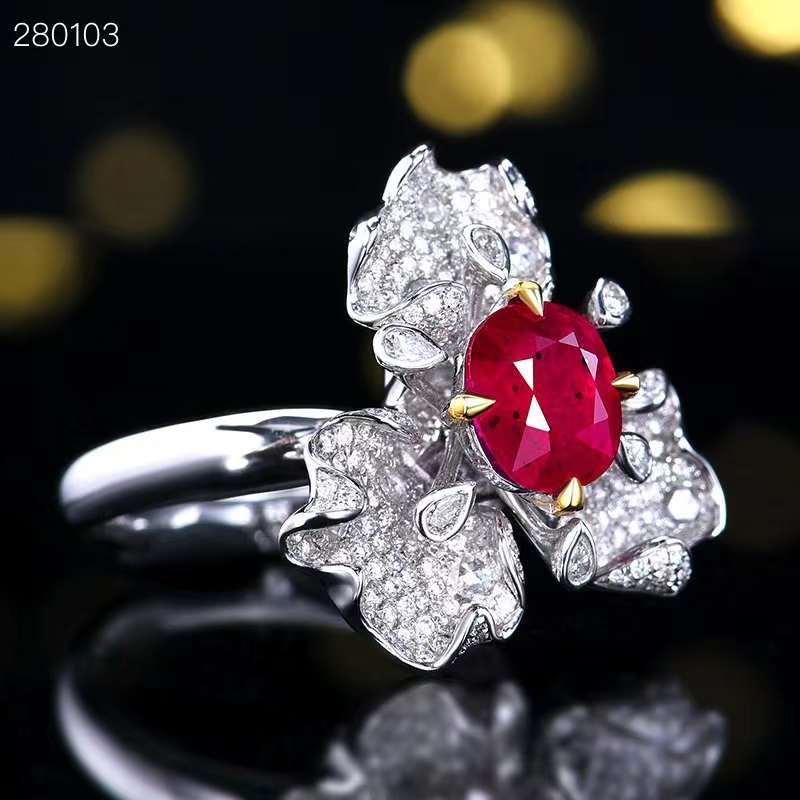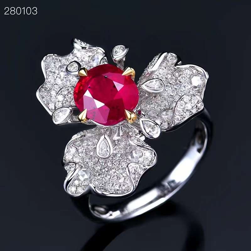 SGARIT Fine Jewelry Manufacturer 18k White Gold 2.23 Carats Oval Cut VVS Jewellery With AIGS Authority Certificate Romantic Ruby Natural Gemstone Ring.