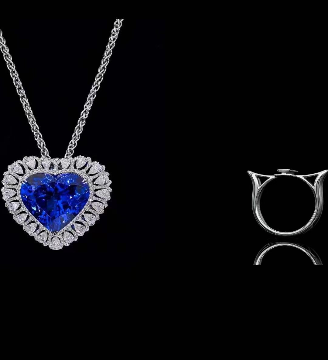 SGARIT Fine Jewelry Manufacturer 18k White Gold 26.72 Carats Heart Cut VVS Jewellery With Guild Certificate Sweet style Blue Natural Gemstone shaped ring pendant.