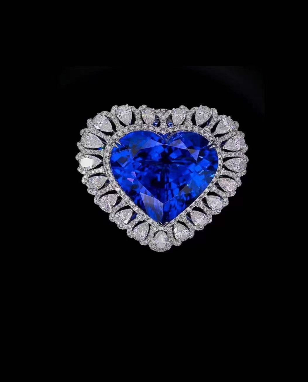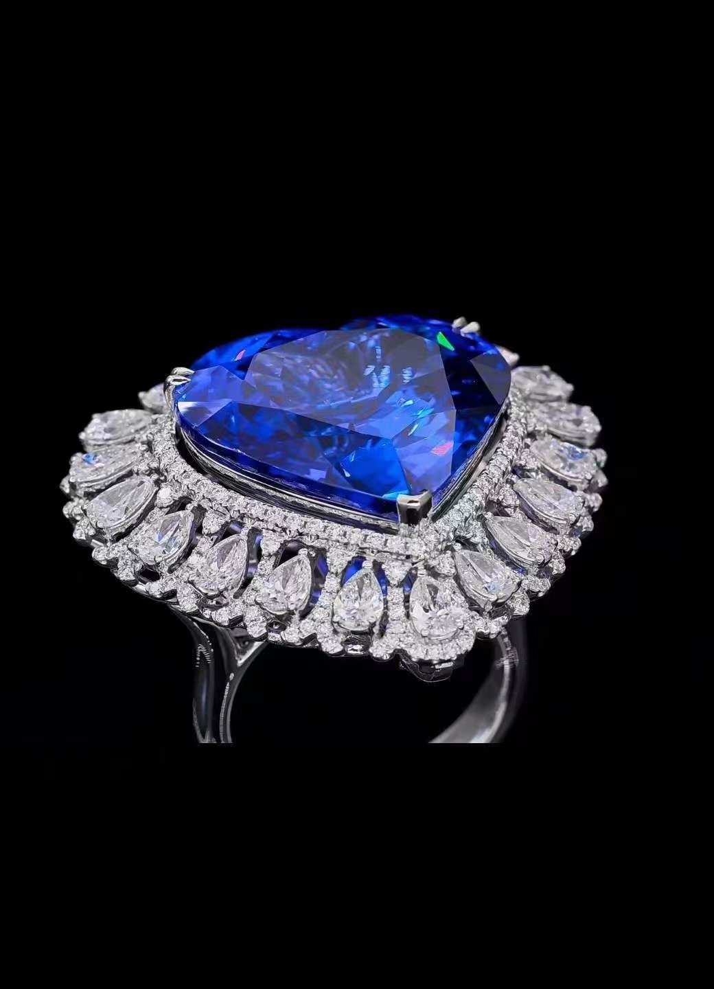 SGARIT Fine Jewelry Manufacturer 18k White Gold 26.72 Carats Heart Cut VVS Jewellery With Guild Certificate Sweet style Blue Natural Gemstone shaped ring pendant.
