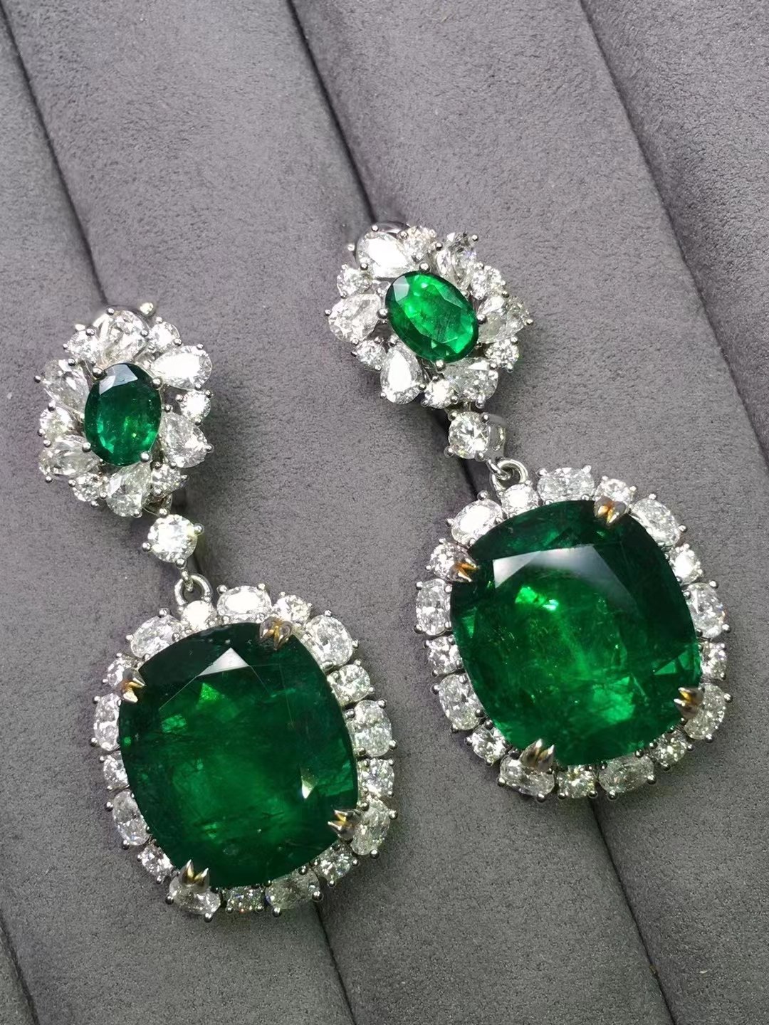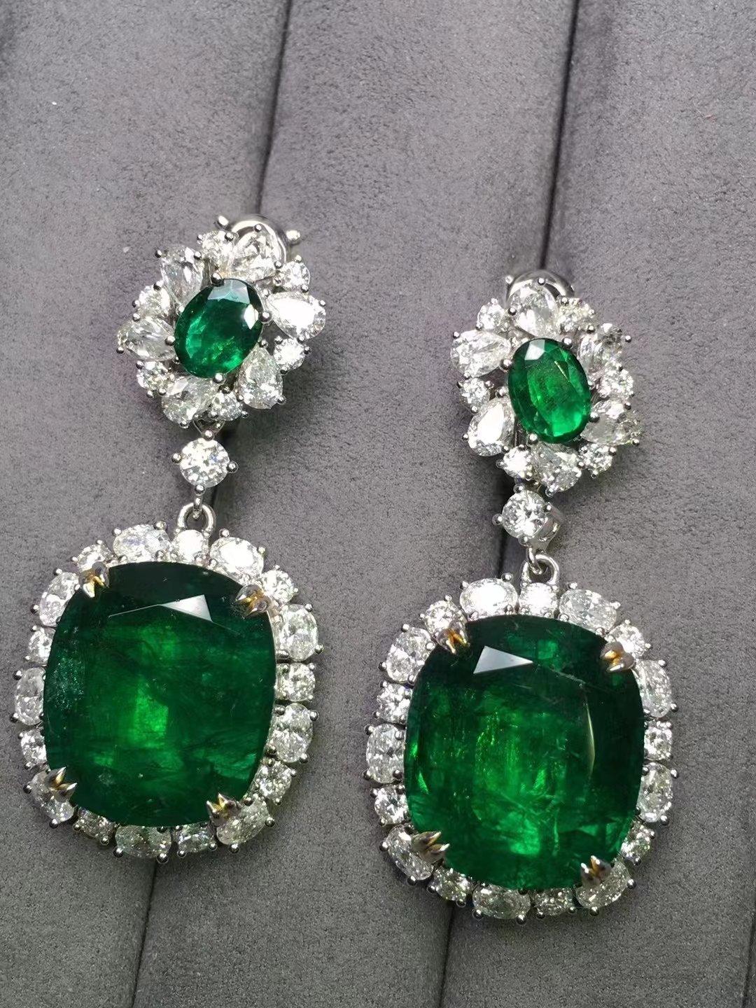SGARIT Fine Jewelry Manufacturer 18k White Gold 27.86 Carats Oval Cut VVS Jewellery With Guild Certificate Classic Emerald Natural Gemstone Earrings.