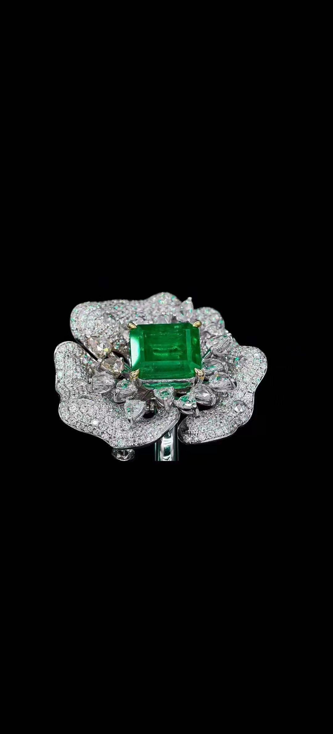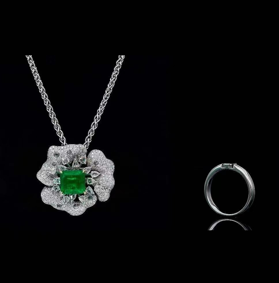 SGARIT Fine Jewelry Manufacturer 18k White Gold 3.86 Carats emerald Cut VVS Jewellery With GRS International Certificate Luxury style emerald Natural Gemstone Necelace.