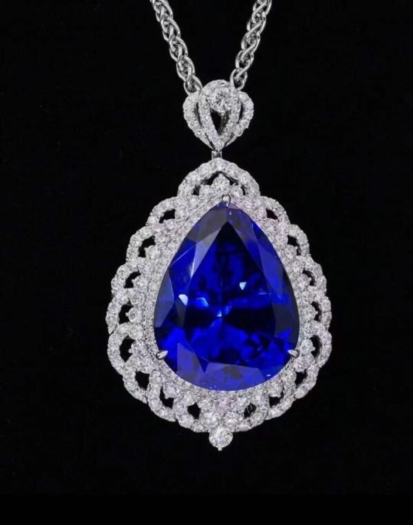 SGARIT Fine Jewelry Manufacturer 18k White Gold 39.8 Carats Pear Cut VVS Jewellery With Guild Certificate Luxury style Blue Natural Gemstone Nacklace.