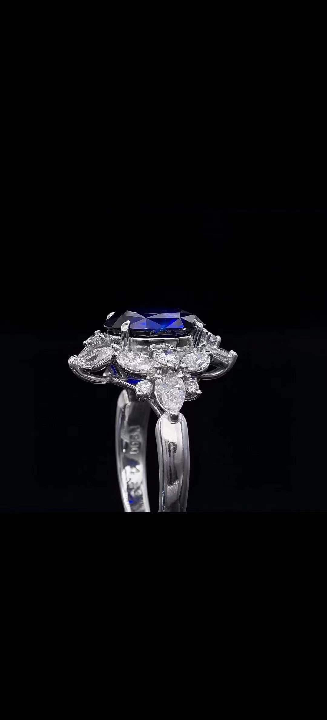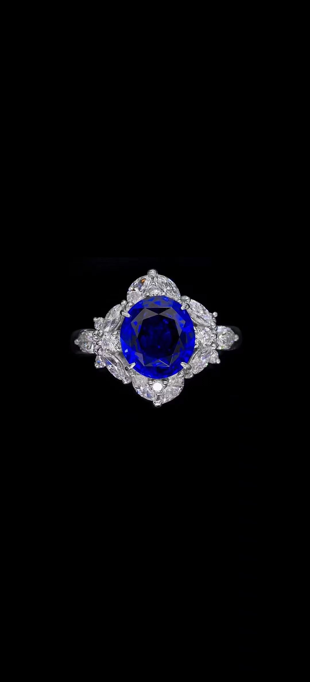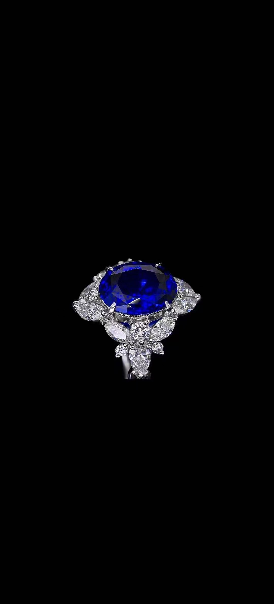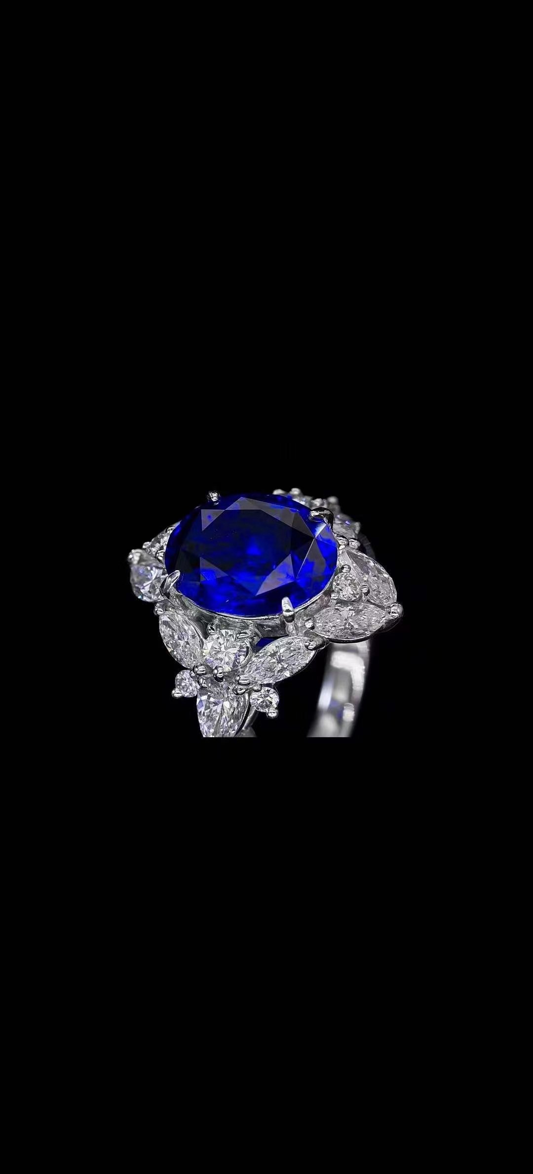 SGARIT Fine Jewelry Manufacturer 18k White Gold 4.23 Carats Oval Cut VVS Jewellery With Guild Certificate Meladze Blue Natural Gemstone Ring.