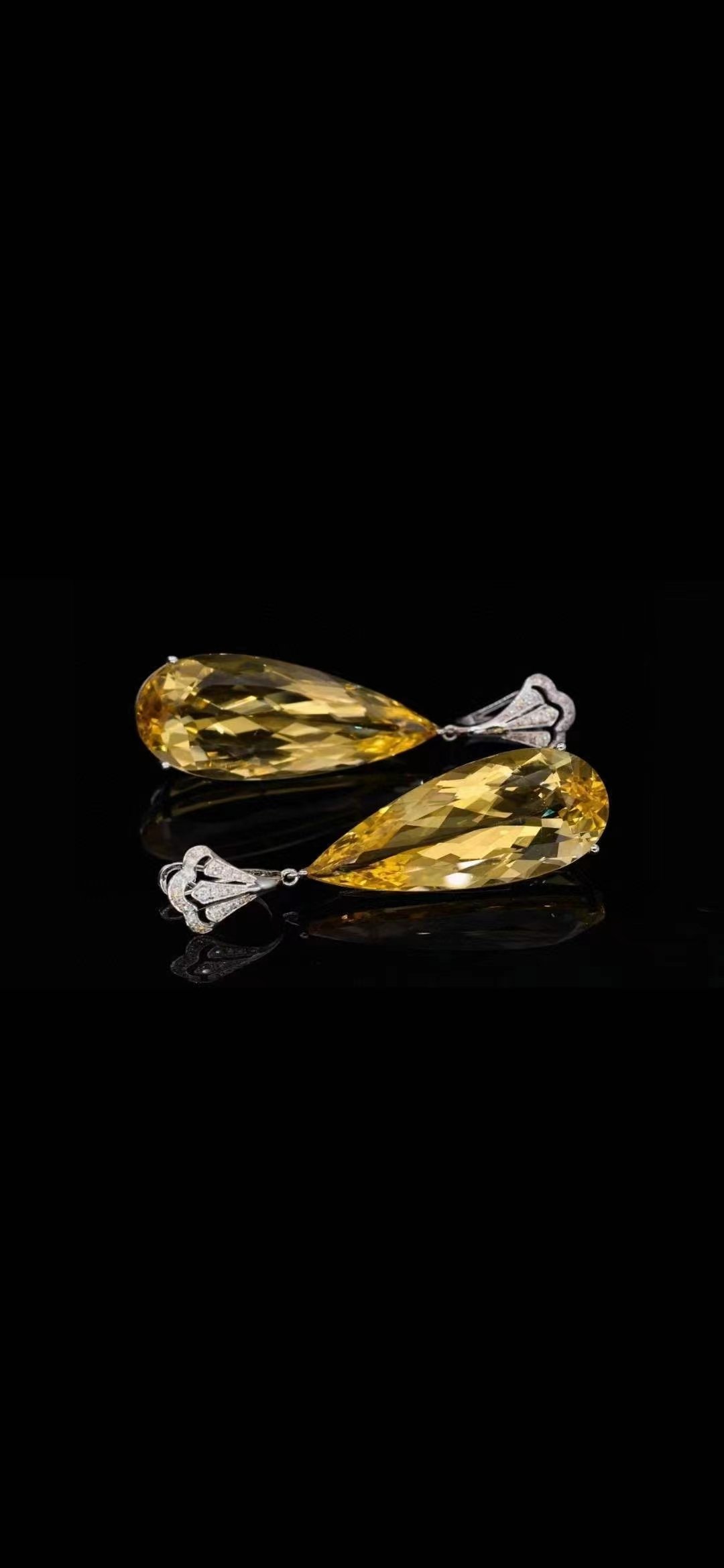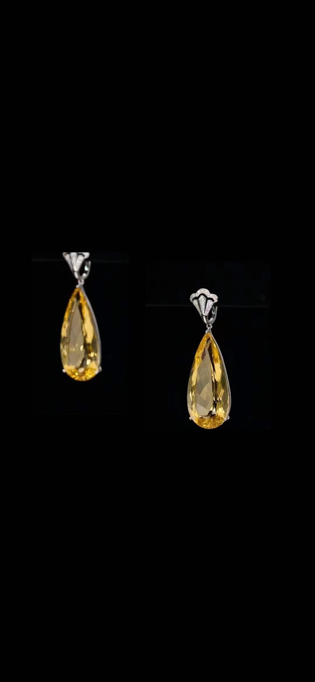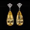 SGARIT Fine Jewelry Manufacturer 18k White Gold 57.72 Carats Pear Oval Cut VVS Jewellery With Guild Certificate Cute Yellow Natural Gemstone earrings.