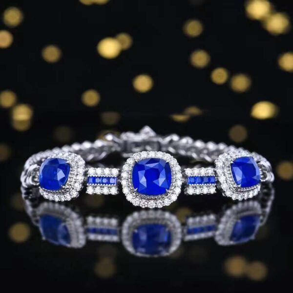 SGARIT Fine Jewelry Manufacturer 18k White Gold 7.12 Carats Cushion Cut VVS Jewellery With AIGS Certificate Luxury style Blue Natural Gemstone Bracelet.