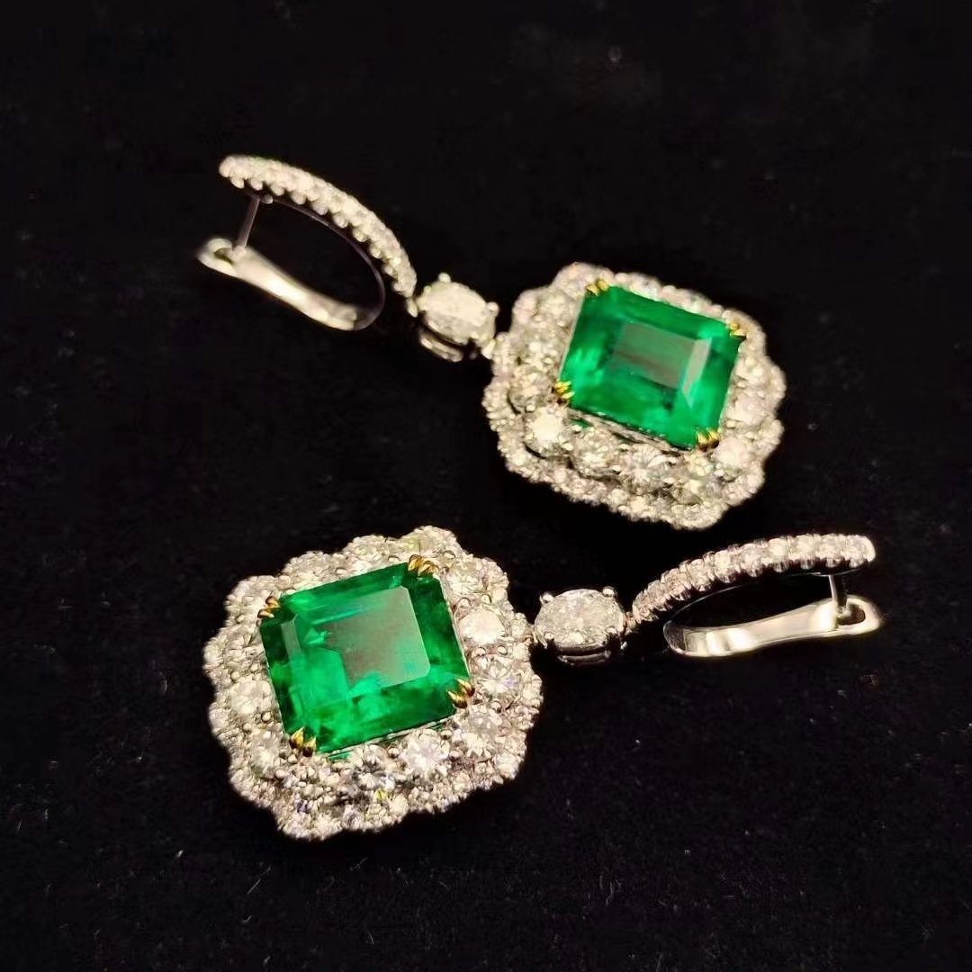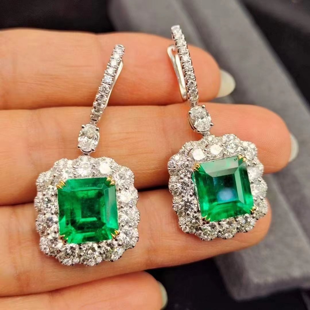 SGARIT Fine Jewelry Manufacturer 18k White Gold 7.39 Carats Emerald Cut VVS Jewellery With GRA Engagement Wedding Gift Classic Emerald Natural Gemstone Earrings.