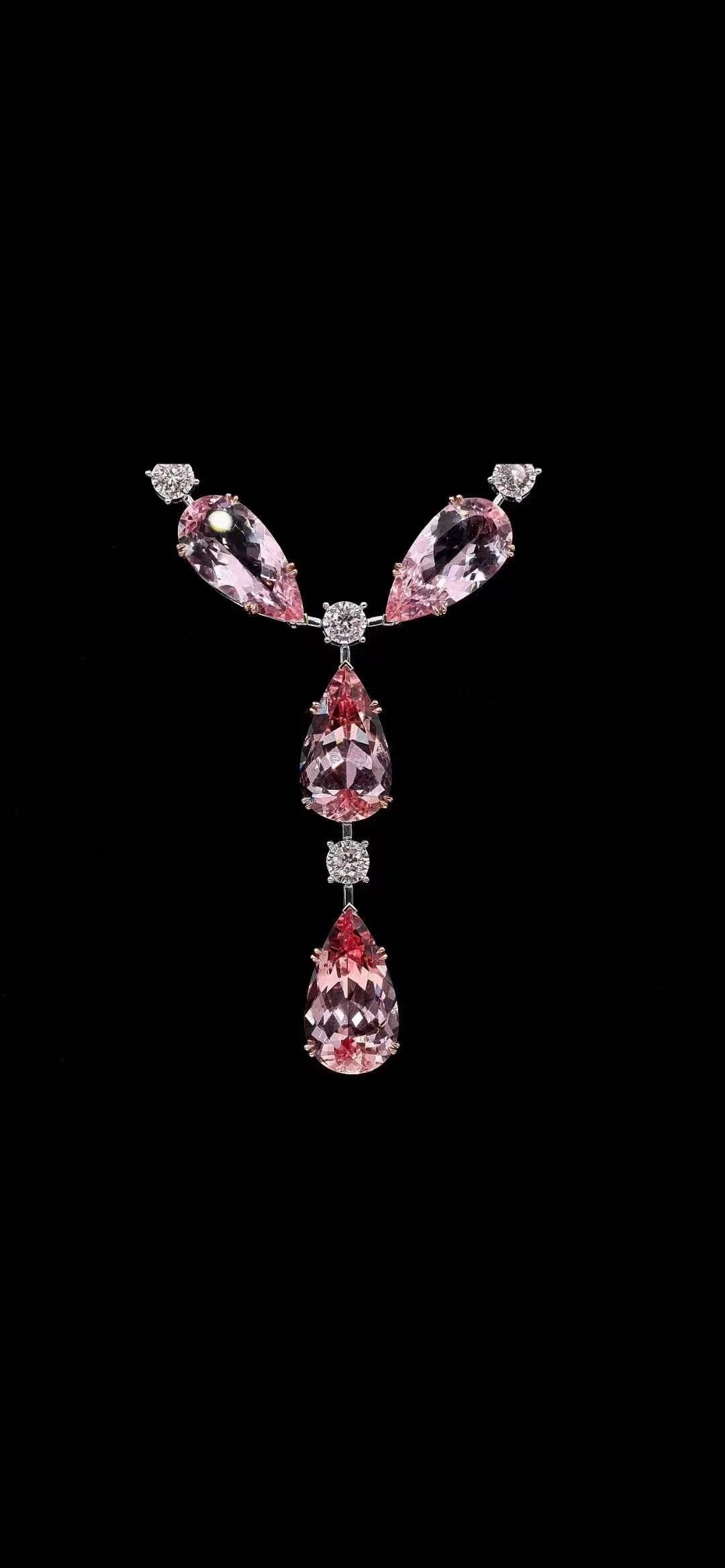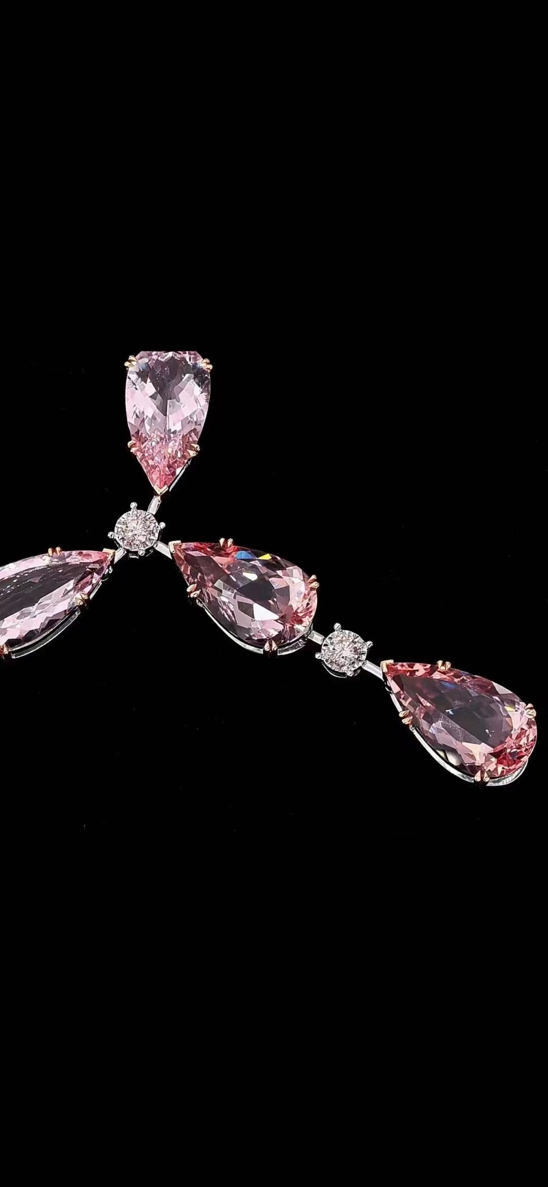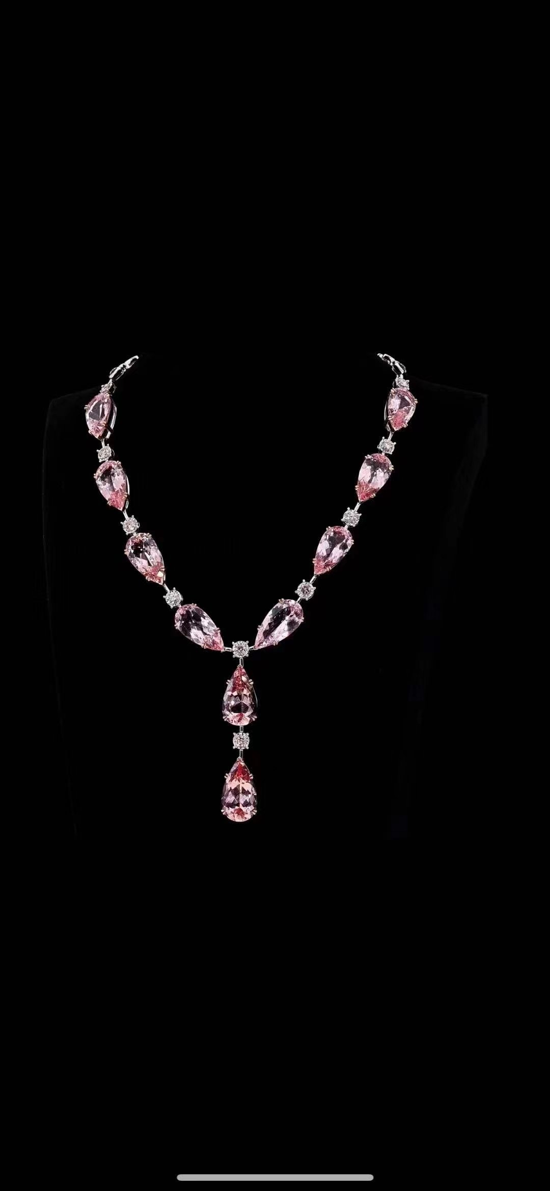 SGARIT Fine Jewelry Manufacturer 18k White Gold 95.57 Carats Pear Cut VVS Jewellery With Guild Certificate girlish Pink Natural Gemstone necklace.