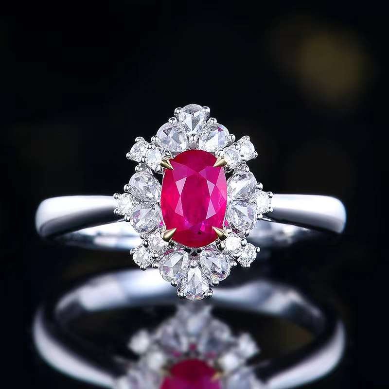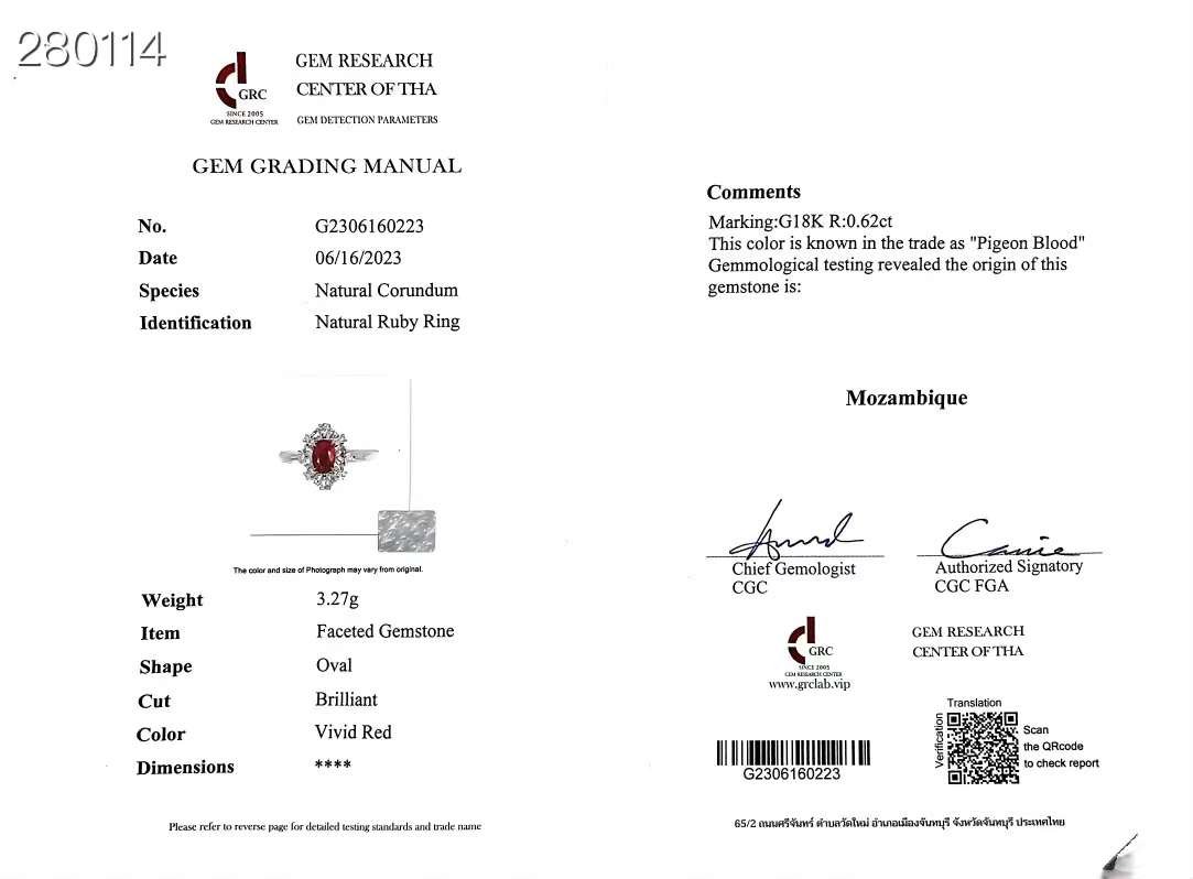 Elevate your style with this exquisite SGARIT Fine Jewelry ring, crafted from gleaming 18k white gold. The centerpiece of this captivating piece is a mesmerizing 0.62 carat oval-cut ruby, radiating a captivating pigeon red hue. Its exceptional VVS clarity ensures a flawless brilliance that will captivate all who gaze upon it.