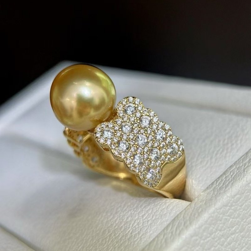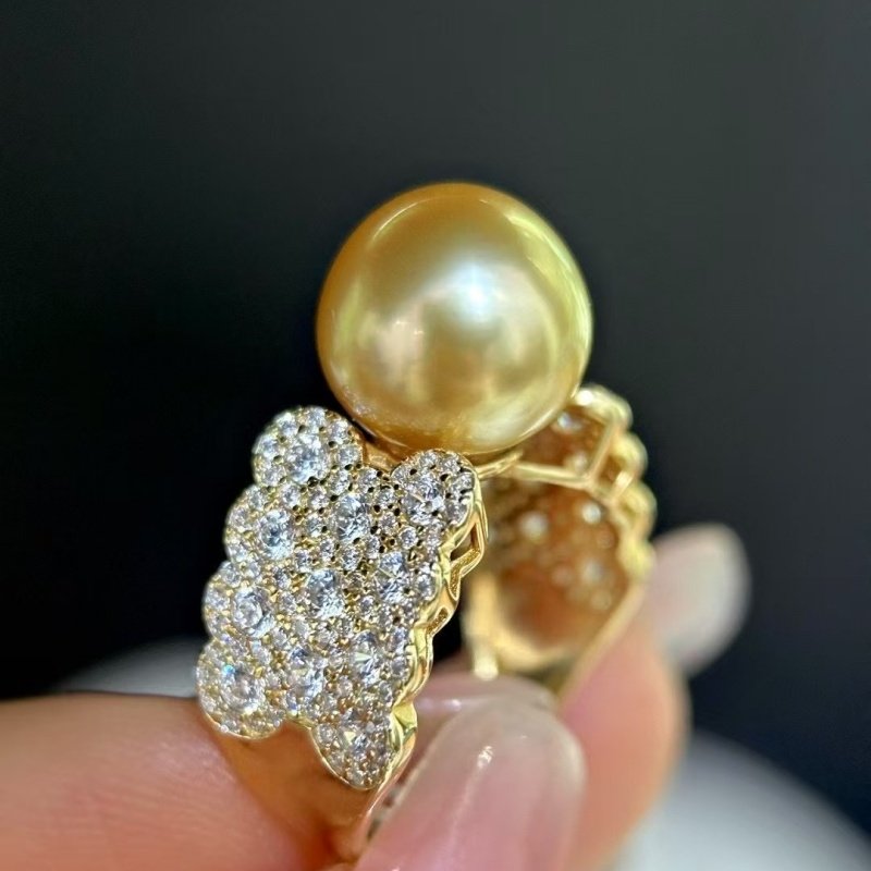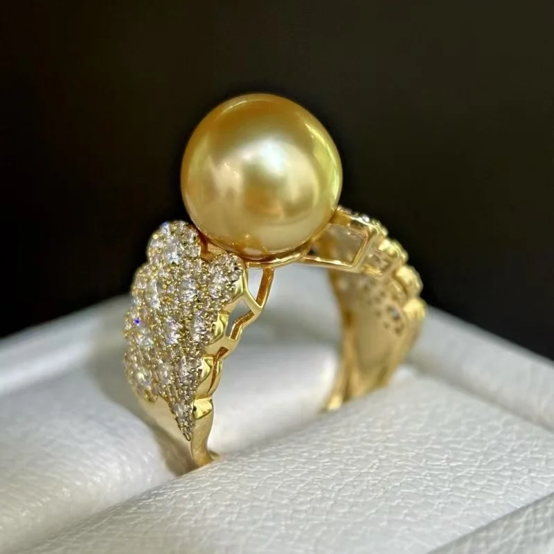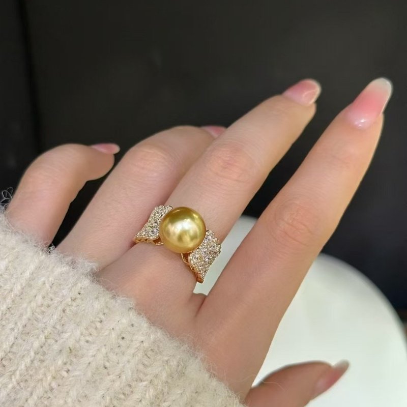 SGARlT Philippine Golden Pearl Ring 12-13mm 925 Sterling Silver Jewelry Luxury South Sea Pearl Gift For Women